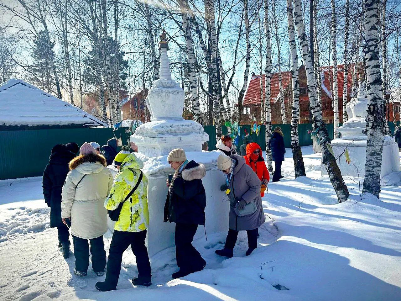 Во дворе стояли очень необычные сооружения - ступа (субурган, суварган), это культовый памятник, возводится в честь какого-нибудь события. Буддисты считают, что ступы обладают магической силой добра и помогают людям очистить себя от пороков и развить в себе добродетели, улучшить карму. Ритуальный обход ступы по кругу по движению солнца это буддийский обряд.