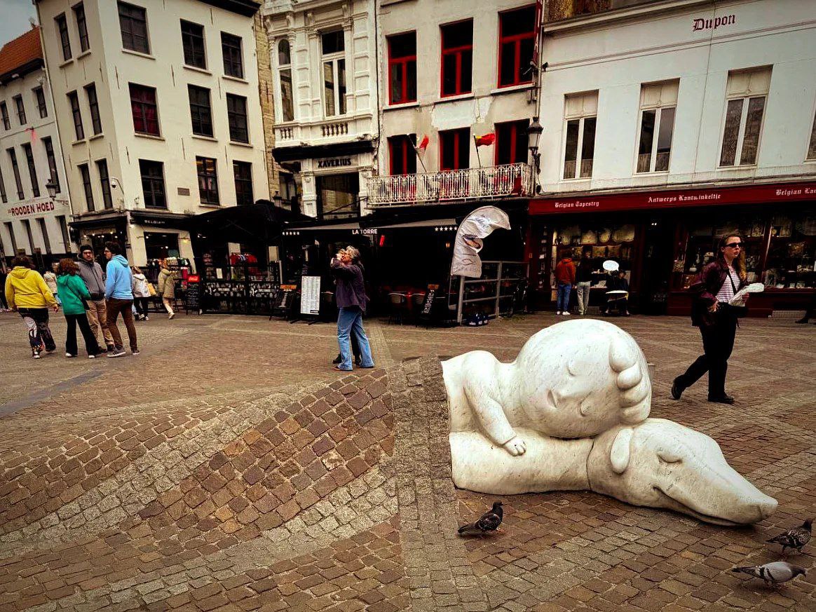 Прямо напротив возвысилась Boerentoren, «Фермерская башня» — первый европейский небоскрёб 1930-х годов, символ модернистского рывка Антверпена, словно город не боится смотреть в будущее.