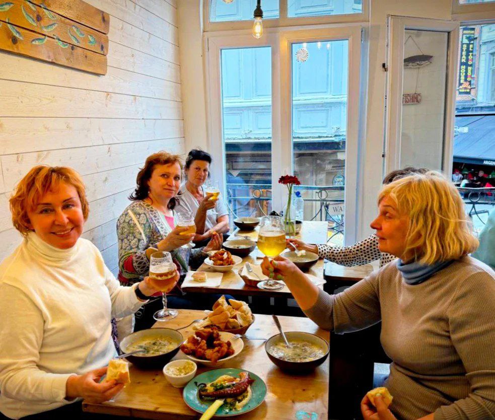 Мы прокатились на трамвае № 4, табличка которого гласила «до Москвы», что стало идеальной шуткой дня.