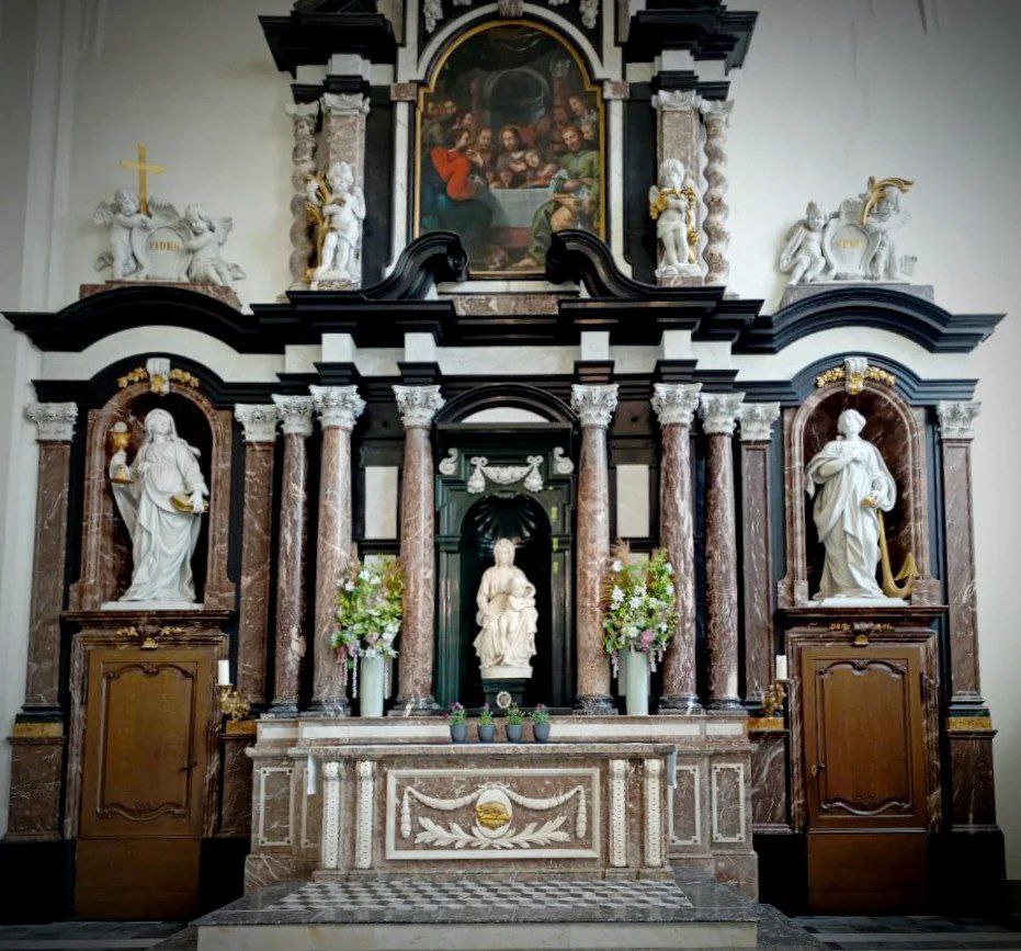 Гентский алтарь. Церковный политптих - многостворчатый живописный алтарь в католическом кафедральном соборе Святого Бавона. С 2021 года алтарь демонстрируется под специальной охраной за стеклом в отдельном «Приделе таинства».