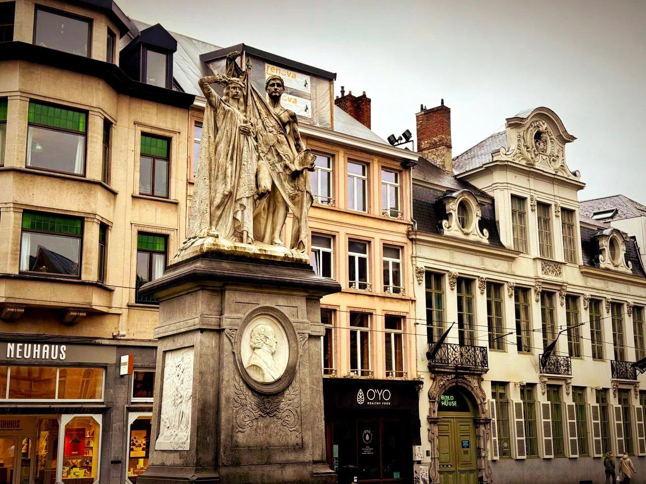 А на ближайшем перекрёстке нас встретил памятник братьям ван Эйк - дань великим мастерам, чьи кисти оживляли холсты.