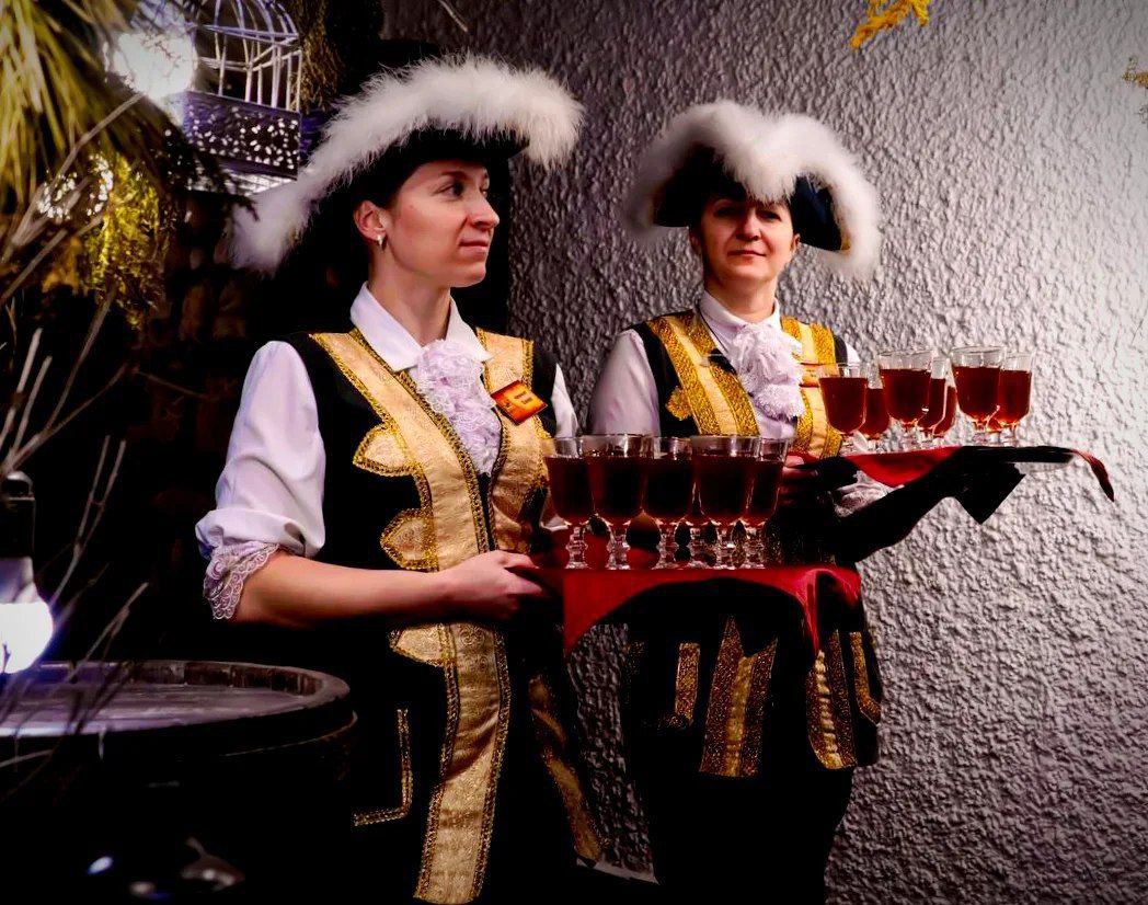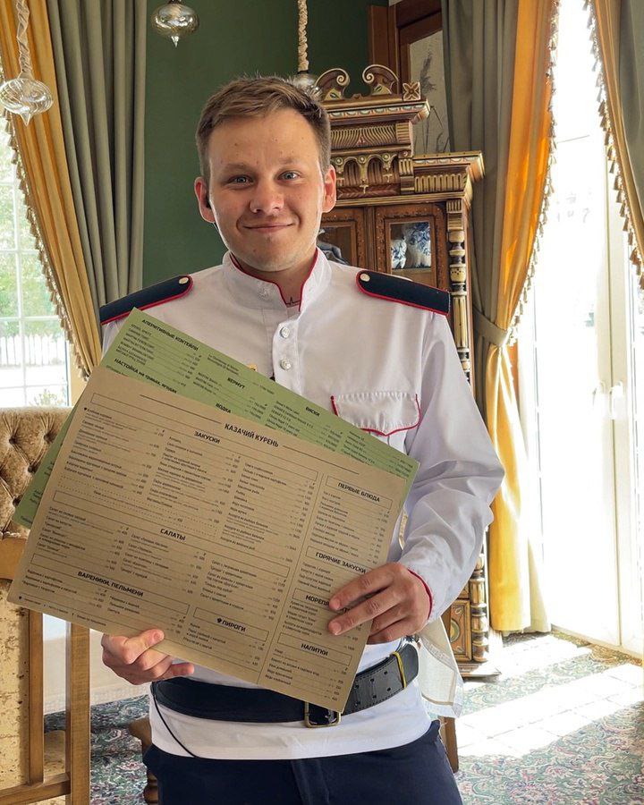 Официанты в униформе казаков, очень приветливые и улыбчивые.