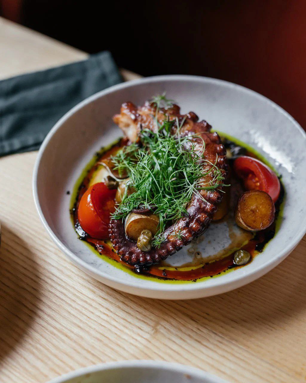 Щупальца осьминога с картофелем, томатами и печёным перцем - горячая штучка
