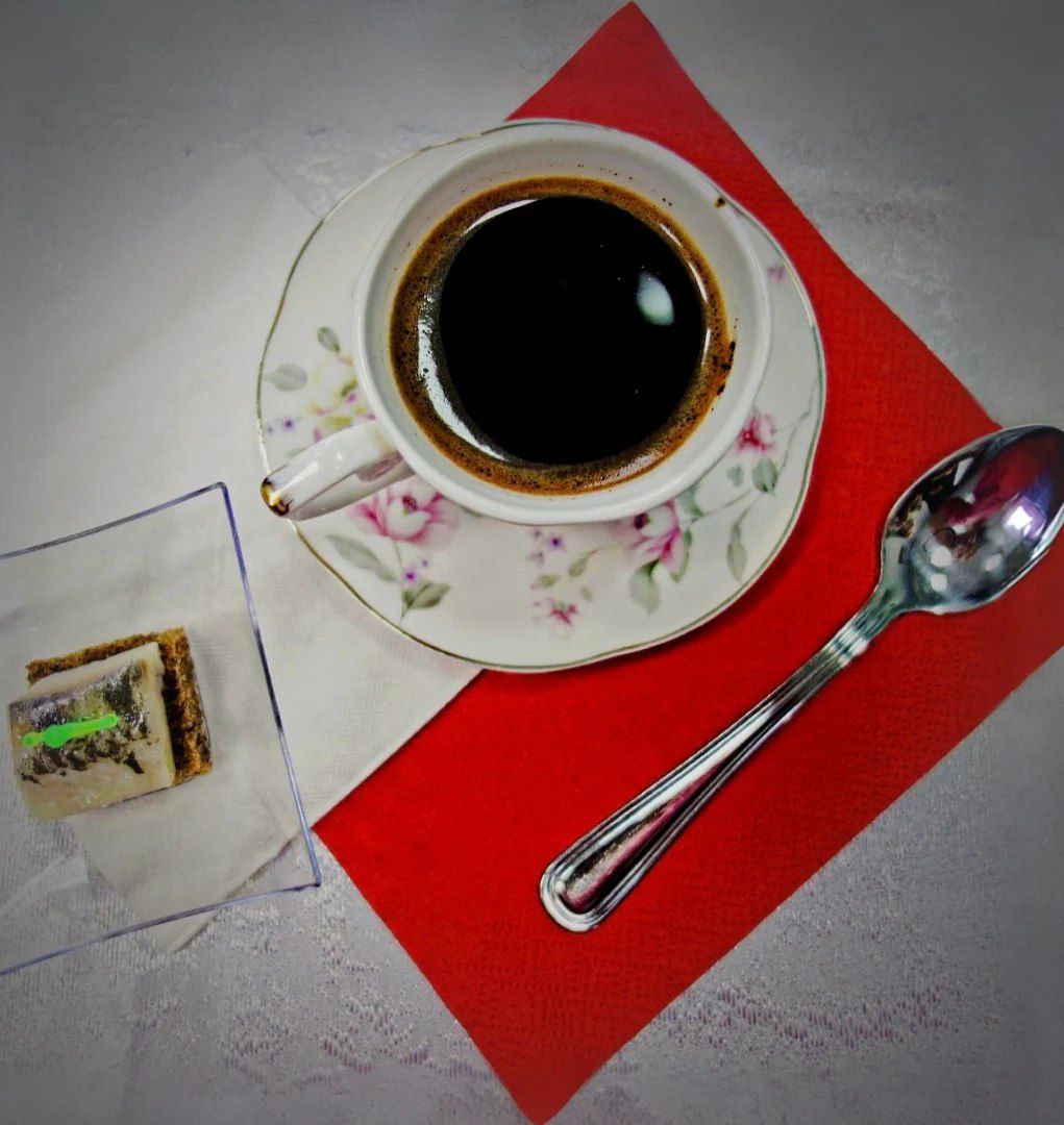 Мы с удовольствием пили кофе с выпечкой, каймаком, но самое поразительное - с малосольной селёдкой на кусочке хлеба - "кохвий с оселедцем". И нам, конечно, было интересно услышать рассказ о забытых, но колоритных кулинарных и бытовых обычаях Дона.