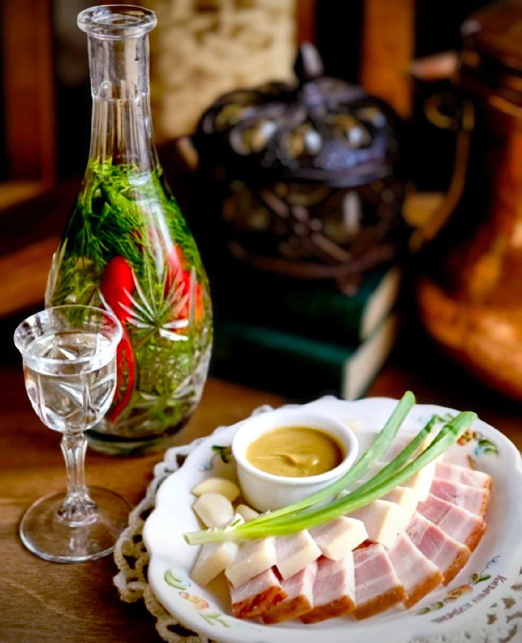 Что же нам было известно перед приездом в Ростов-на-Дону про традиционную кухню донского казачества?! Естественно, первое, что на ум приходило - варёные раки, рыба. И какого было наше удивление от этого необычного угощения в казачьем духе: травяной чай с салом, солёные огурцы с мёдом, кофе с селёдкой и вареньем.