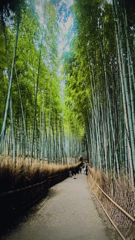 Прогулялись по дорожкам, которые укрывались бледно зеленым сиянием, пробивающимся сквозь бесконечную шеренгу бамбука.