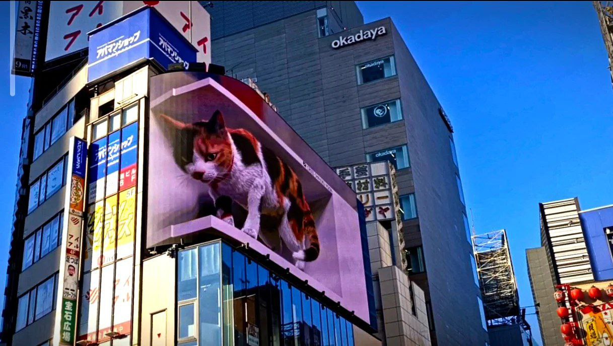 3-Д реклама поющего котика на улицах Токио