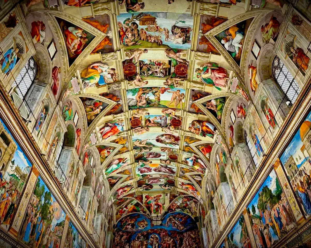 Но главное - Сикстинская капелла! Входя в зал, ты погружаешься в целый мир. Стены рассказывают тебе истории о вере и сомнениях, о грехе и спасении. Ты медленно поворачиваешься, и твой взгляд скользит по фрескам, каждая из которых могла бы прославить любого художник.