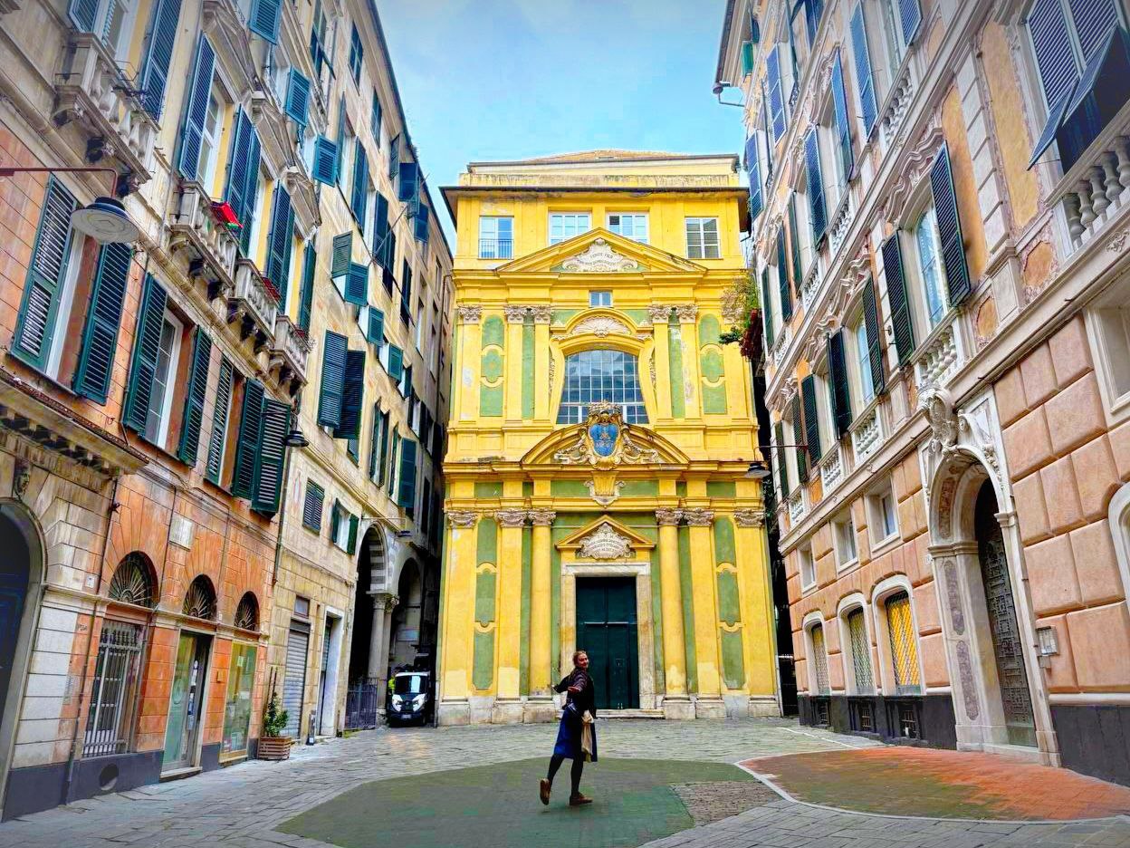 Фасады зданий кажутся скромными, но скрывают множество интересных деталей: солнечные часы, лепнину, изящные карнизы и даже нарисованные окна - своеобразную находку XVIII века, когда в Генуе ввели налог на настоящие окна.