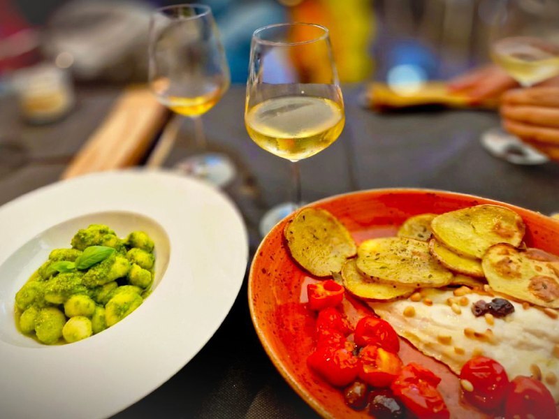 Завершили день в бистро "Чинкве Терре", где попробовали местное вино, спагетти с морепродуктами, свежую рыбу и знаменитый лигурийский песто.