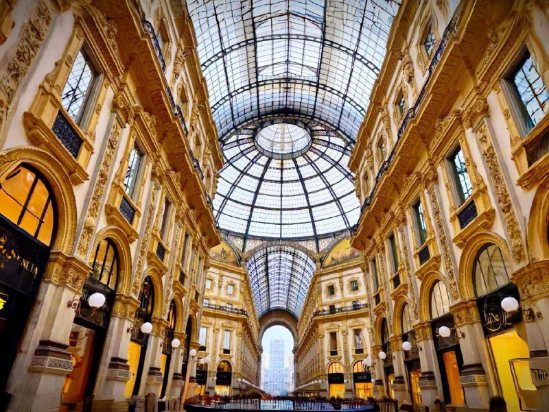 Вслед за Дуомо - в "гостиную Милана". Галерея Виктора Эммануила II, где под стеклянными сводами время течёт роскошнее: шорох шагов по мраморному полу, приглушённые разговоры, звуки музыки из бутиков.