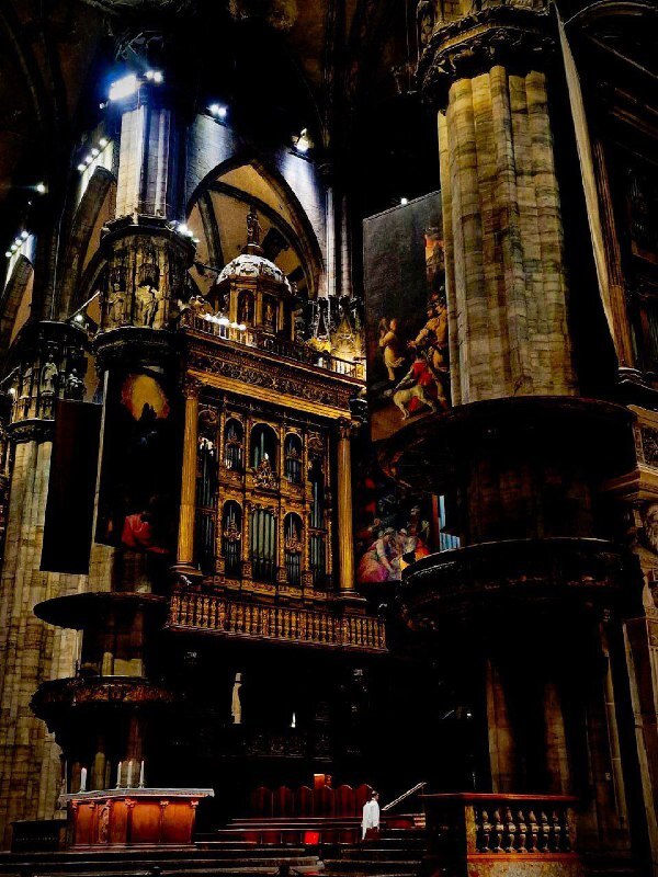 Первым делом - к Дуомо, знаменитому собору. Ещё издалека замечаю его ажурную громаду, словно сотканную из белого мрамора. Подхожу ближе - и дух захватывает от масштаба: 135 шпилей, сотни скульптур, витиеватая резьба. Касаюсь ладонью прохладного кандолийского мрамора - он будто хранит тепло шести столетий строительства.