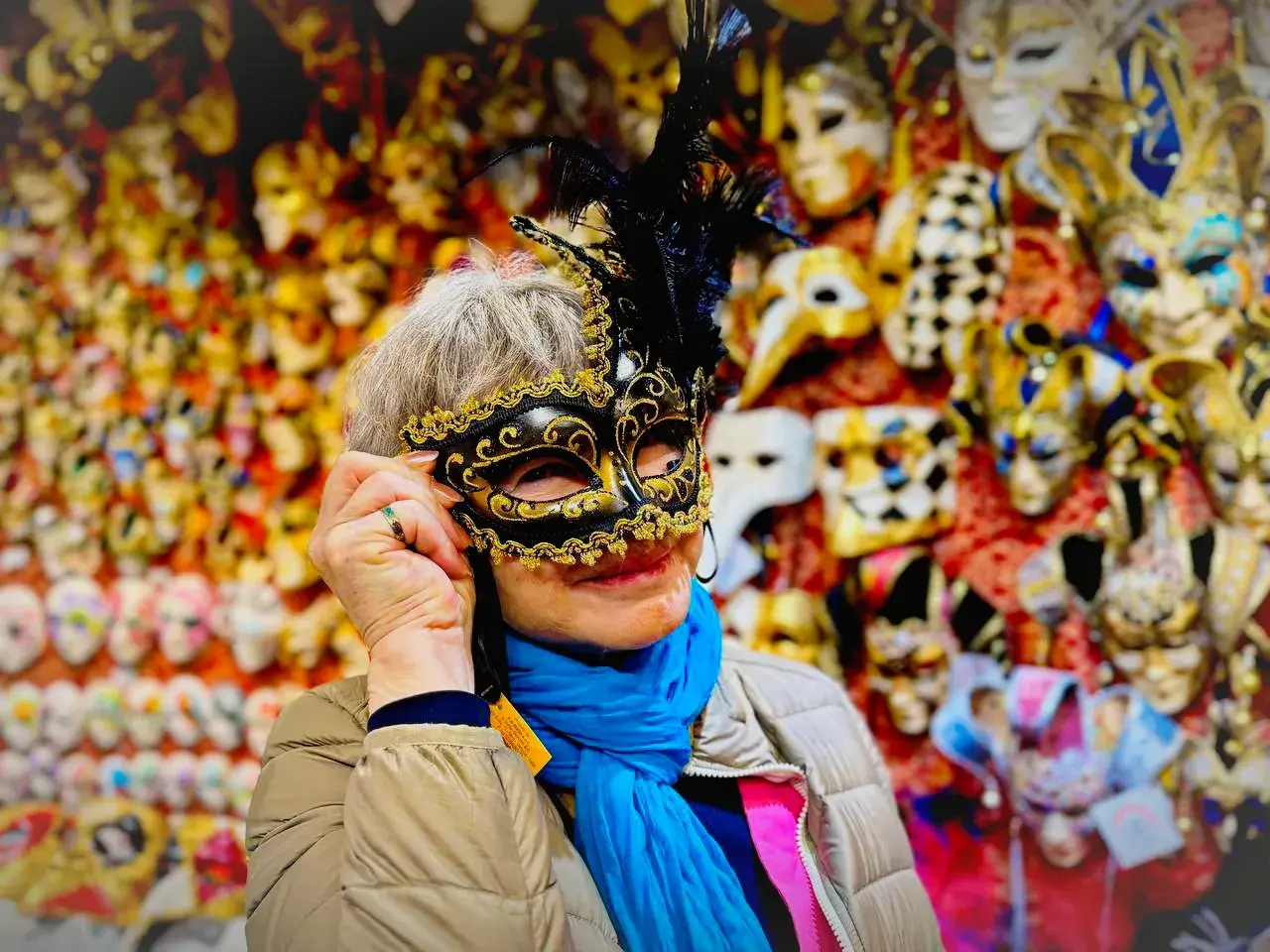 Но настоящая магия начинается с наступлением сумерек. В витринах антикварных лавок просыпаются карнавальные маски - от изящных баут с серебряной инкрустацией до загадочных медико делла песте. Кажется, они хранят не только память о балах-маскарадах, но и тысячи нерассказанных историй.