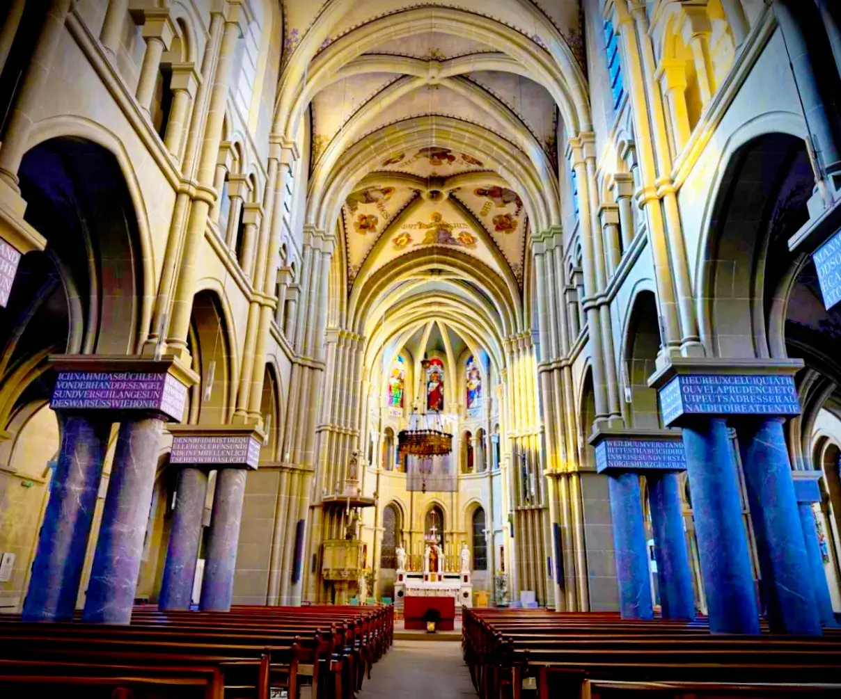 Внутри царит прохлада, тишина и удивительное ощущение покоя. Высокие своды, цветные витражи, отбрасывающие на каменные плиты разноцветные блики... И пусть здесь нет позолоты и роскоши, как в некоторых других соборах, в этой строгой готической красоте есть своя, очень бернская основательность и сила.