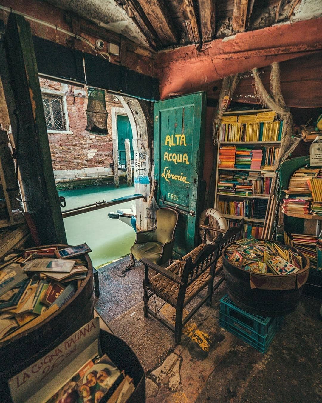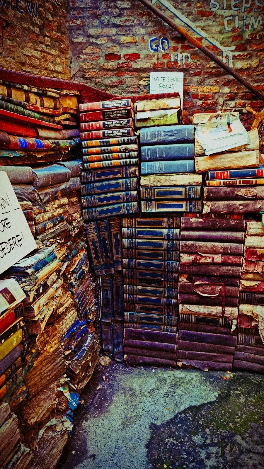Вторая - её душа, поэтичная и непобедимая, что нашла своё воплощение в знаменитом книжном магазине Libreria Acqua Alta. Здесь книги живут своей особой жизнью: они покоятся в старинных ваннах, дремлют в деревянных гондолах и томятся в керамических лодках - готовые в любой момент отправиться в плавание по прибывающим водам.
