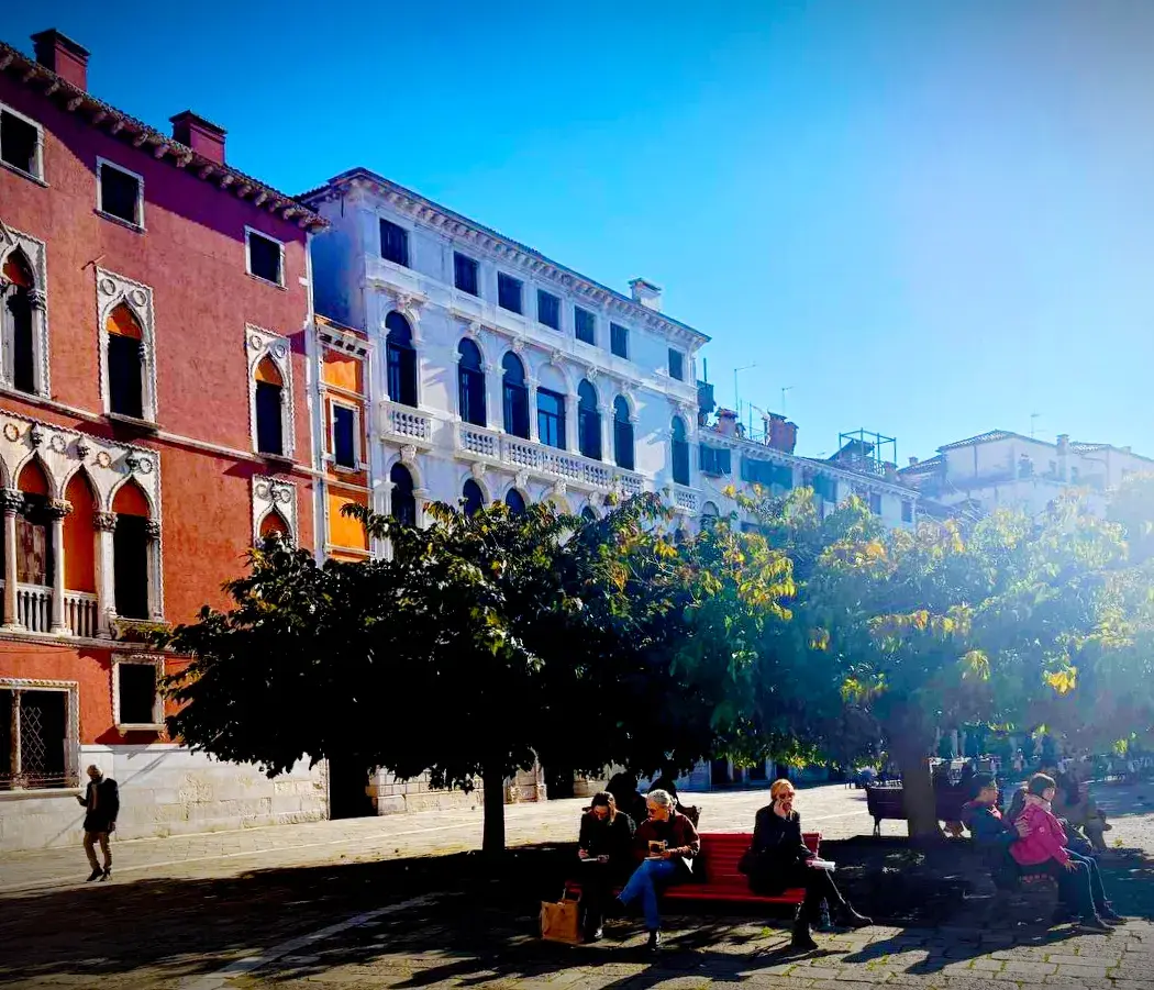 Иногда счастье - это просто скамейка на солнечной площади в Венеции