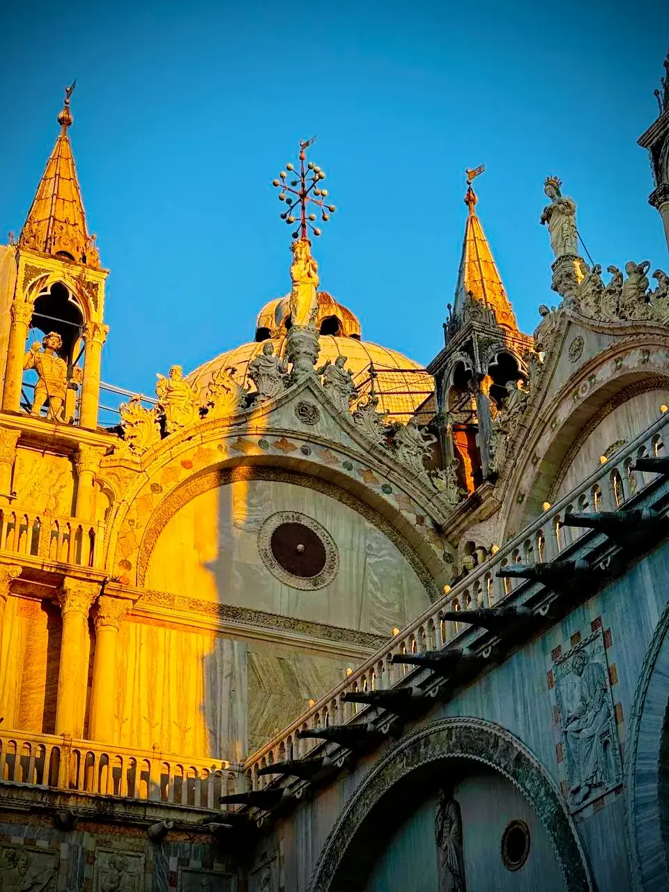 А в базилике Сан-Марко время застывает в золоте мозаик, где под куполами живут евангельские сюжеты, подсвеченные отсветами лагуны.