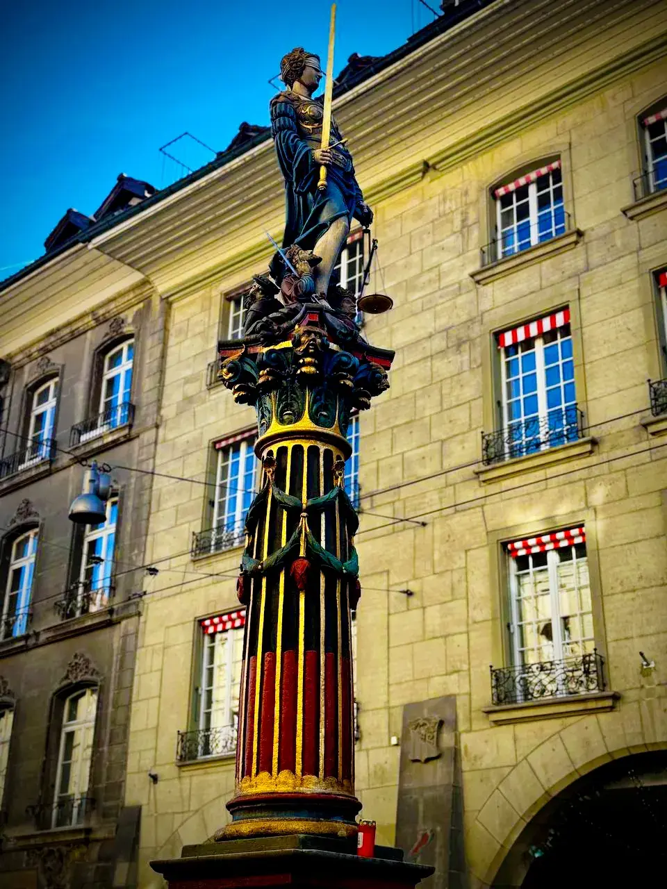 Но самое неожиданное - это фонтаны Берна. Они тут на каждом шагу, и у каждого свой характер. Яркие фигуры бернских фонтанов, расписанные вручную, - наследие эпохи Возрождения, доступное каждому на улице. Каждая фигура рассказывает свою легенду, от мифологической до бытовой. Вот, например, фонтан - единственный полностью сохранивший свой первоначальный облик и включённый в список культурного наследия национального значения.