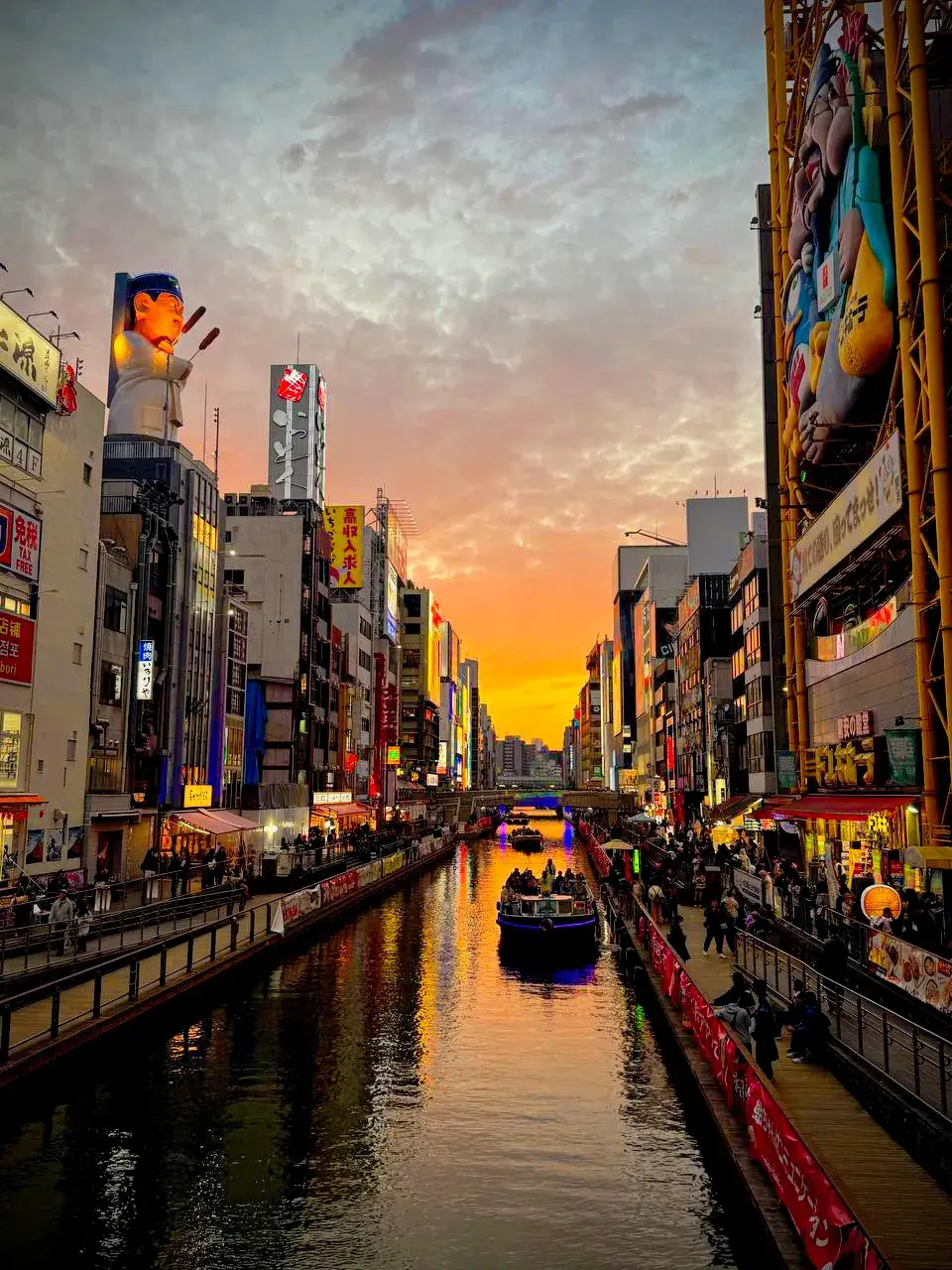 Дотонбори - это воплощённая гипербола. Неоновая реклама здесь кричит не о товаре, а об аппетите: гигантский краб шевелит клешнями, дракон обвивает фасад, а смеющийся клоун манит в царство американских горок.