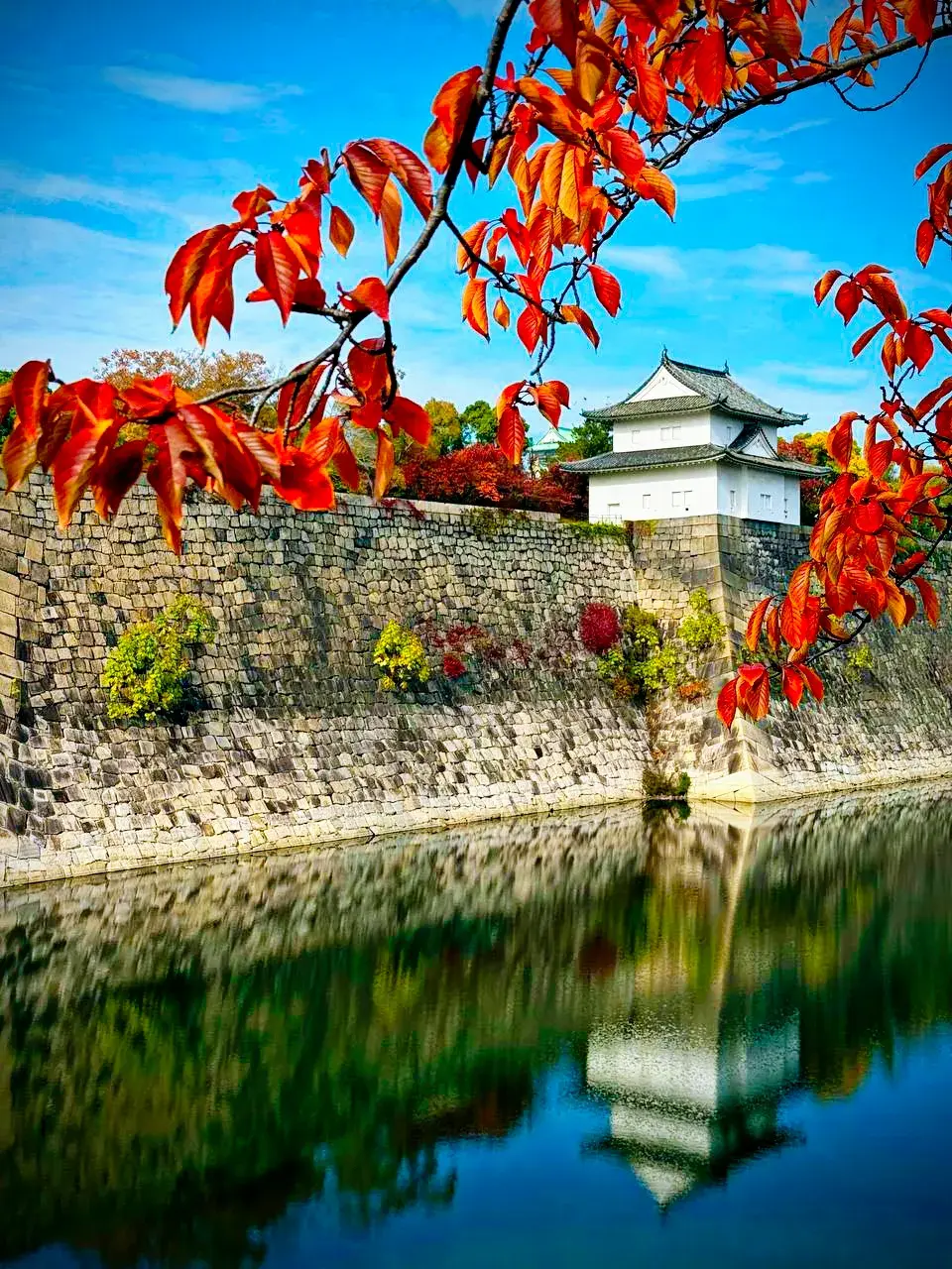 А среди этого пиршества чувств - тихие острова истории. Замок Осака, величественный и строгий, будто выточен из времени.