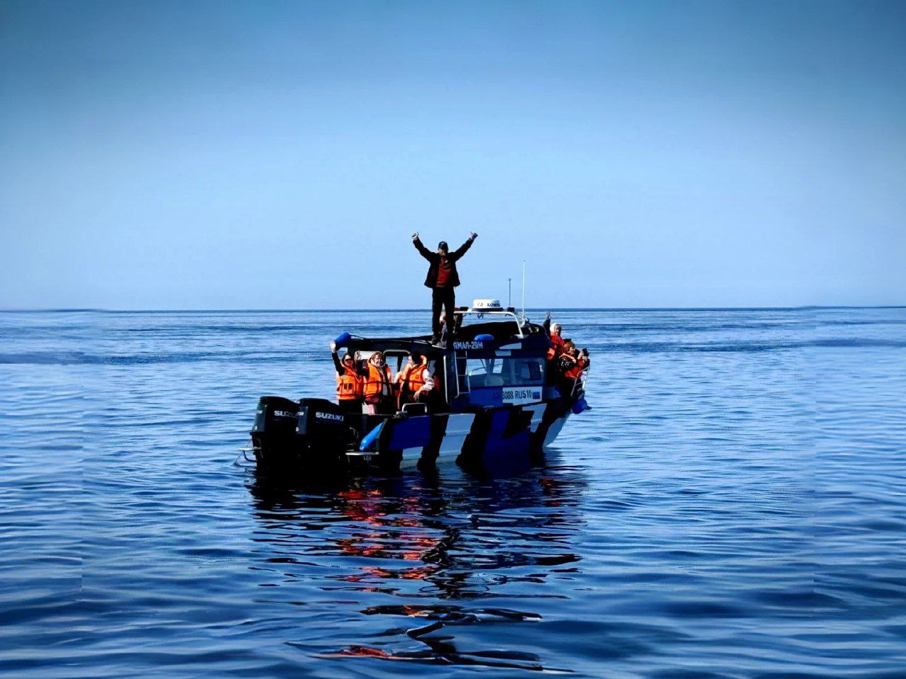 А у берега мыса Белужий нас встретила стая северных белых китов - белух. Они выныривали из глубин, словно призраки, и их белоснежные тела блестели в лучах заходящего солнца. Казалось, что морские воды приветствовали нас, открывая свои тайны и даруя мгновение радости.