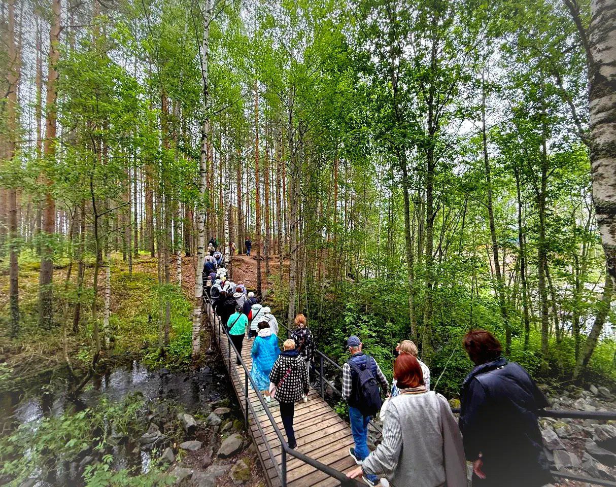 Следующей остановкой стал заповедник «Кивач» - одно из старейших заповедных мест России. В его сердце, среди вековых деревьев, величественно шумит водопад Кивач, символ Карелии.