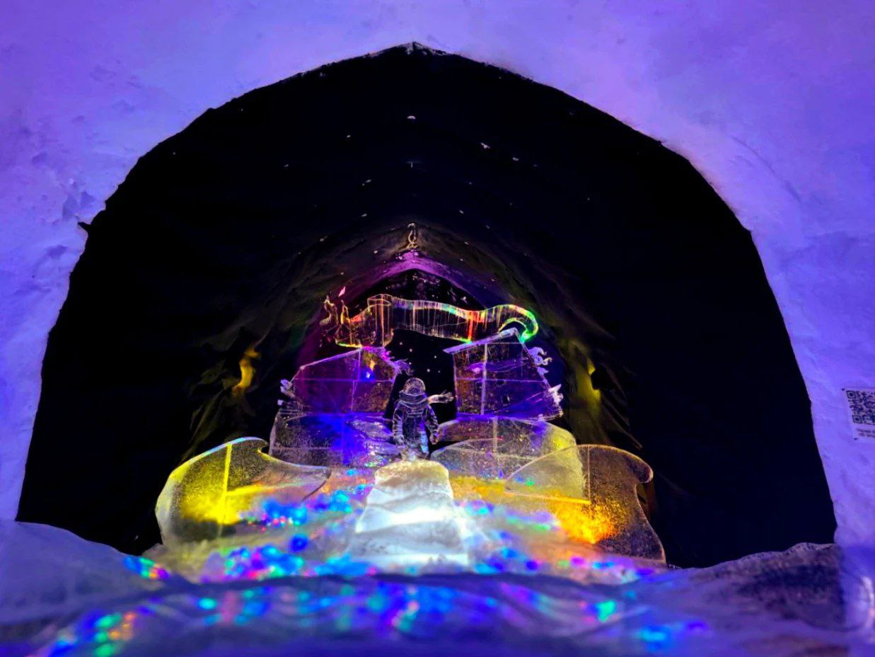 Весь музей сделан из прессового снега, в огромных пластах снега вырываются больше 20 залов с переходами, а стены покрывают снежными барельефами на разную тематику. Очень много ледовых скульптур.