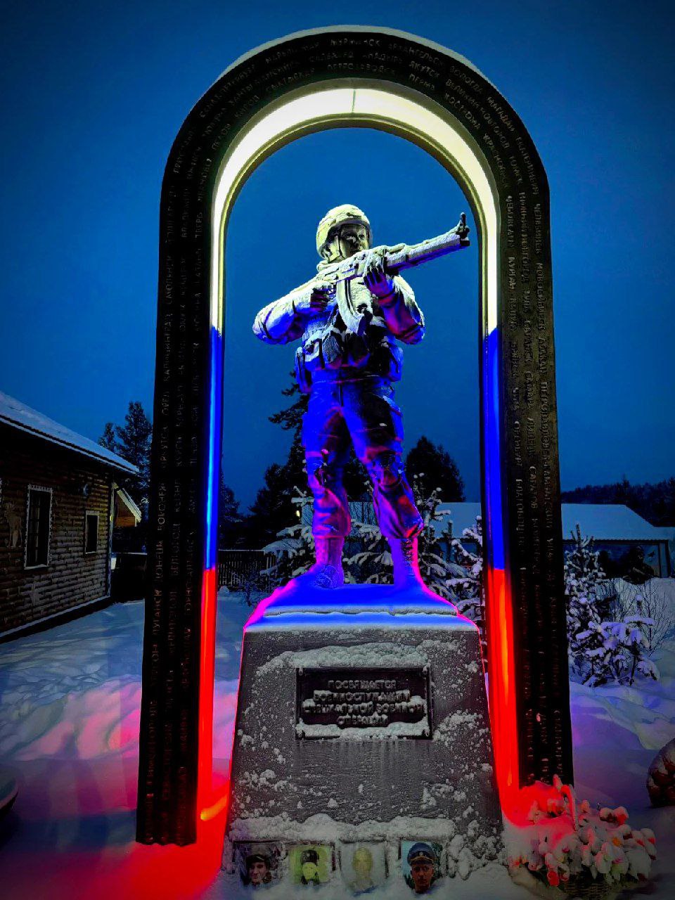 Чуть позже, в саамской деревне, мы увидели памятник солдату СВО.