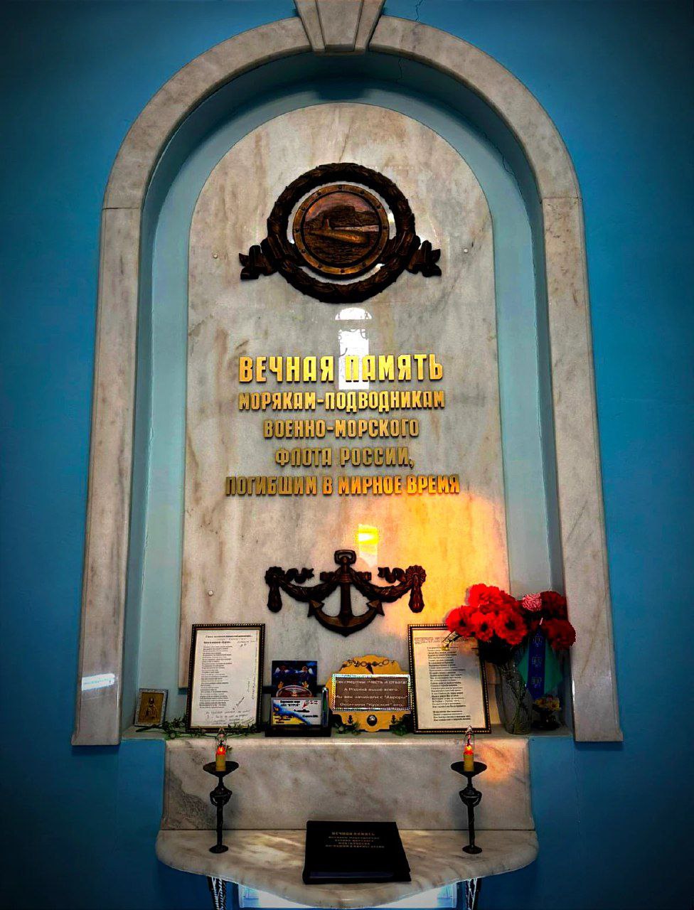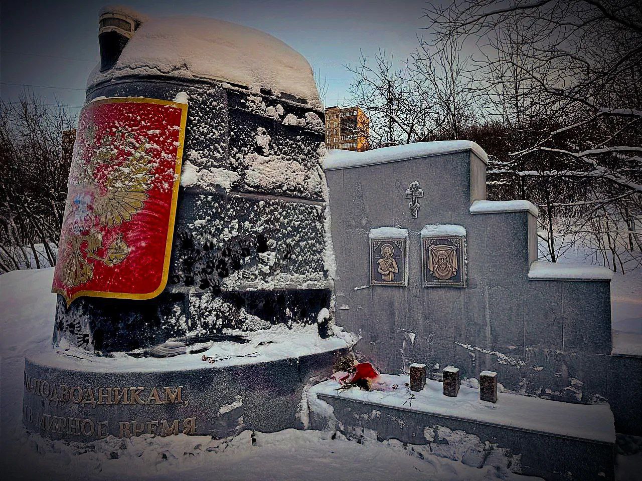 Также бережно жителя Заполярья относятся и к памяти тех, кого море забрало уже в мирное дни. Мы посетили комплекс памяти морякам. Это Храм Спаса-на-Водах и символический маяк. Каждая грань башни маяка как страница книги памяти ушедшим военным морякам-надводникам, военным морякам-подводникам, лётчикам морской авиации, промысловым и торговым морякам. Хранится здесь и настоящая рубка подводного атомного крейсера "Курск".