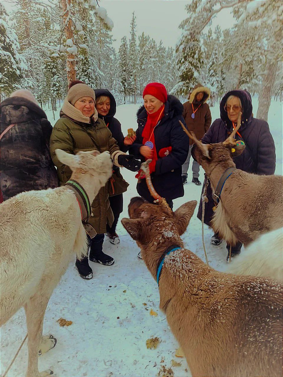 Мы кормили оленей морковкой, ягелем и хлебом Катались на "банане"Соревновались с туристами из других стран Пообщались с голубоглазыми хасками Катались с горы