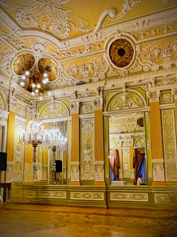 Поднимаясь по мраморной лестнице, по которой когда-то ступали бальные туфли и начищенные сапоги, ловишь себя на мысли о бренности и вечности. Блеск золота, глубина красного дерева, холодный блеск мрамора - здесь всё рассказывает о деньгах, но деньгах, облагороженных безупречным вкусом.