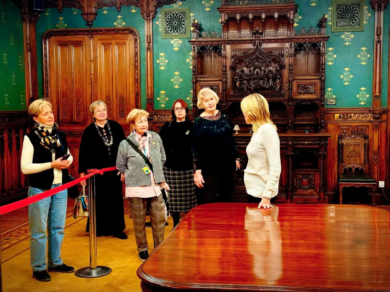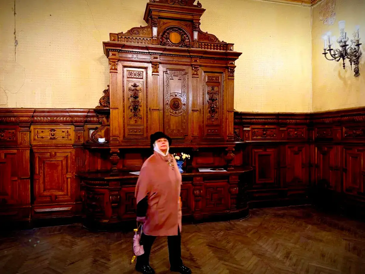 Плавные линии модерна, словно застывшая музыка, ведут взгляд по лепнине потолков, к витражным окнам, отбрасывающим на пол причудливые цветные блики. Каждая деталь - от тяжелой портьеры до ручки двери - кажется не просто предметом, а частью сценографии вечного спектакля под названием «История».