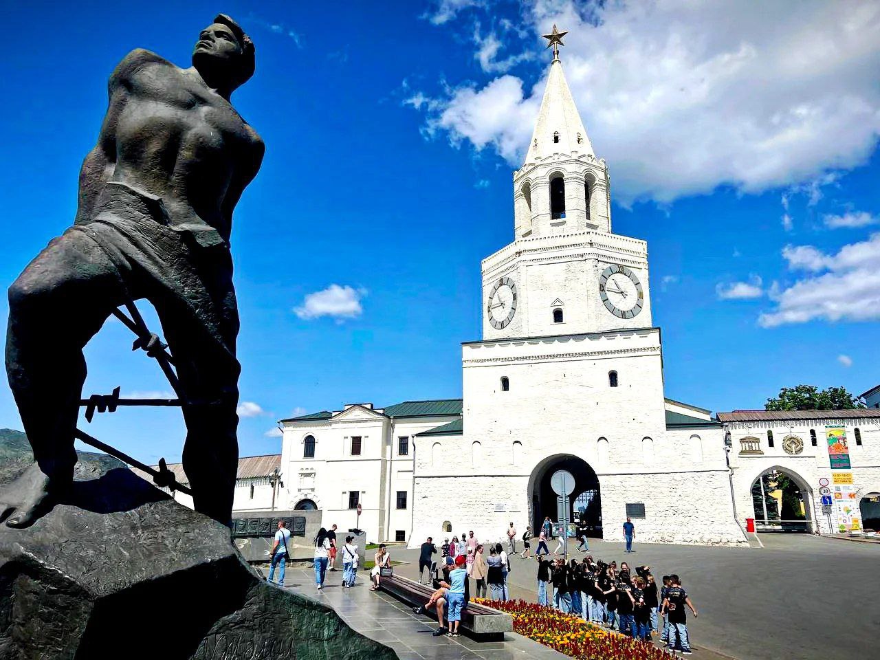 На площади перед Спасской башней находится мемориал, который символизирует мужество, отвагу, силу, непоколебимость и единство татарского народа в лице народного героя - поэта Мусы Джалиля.