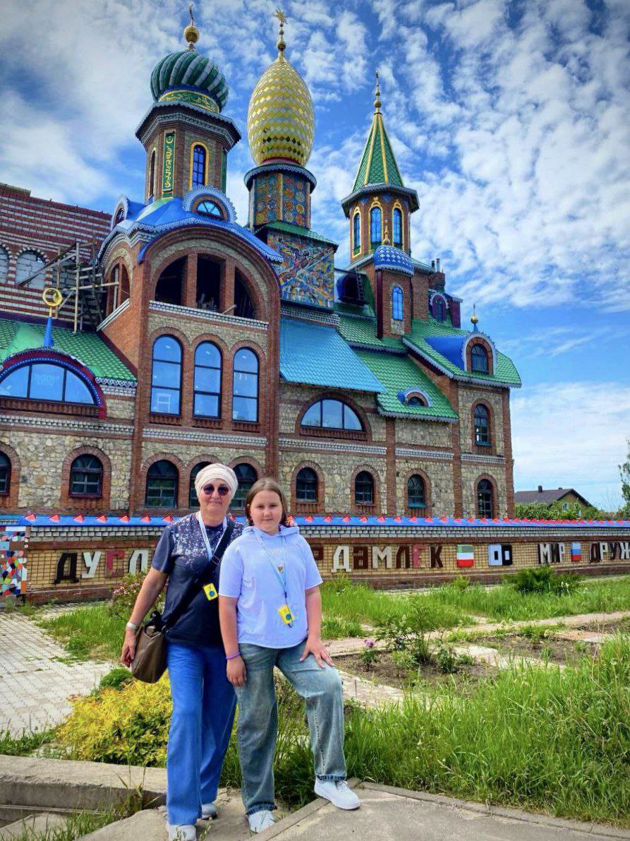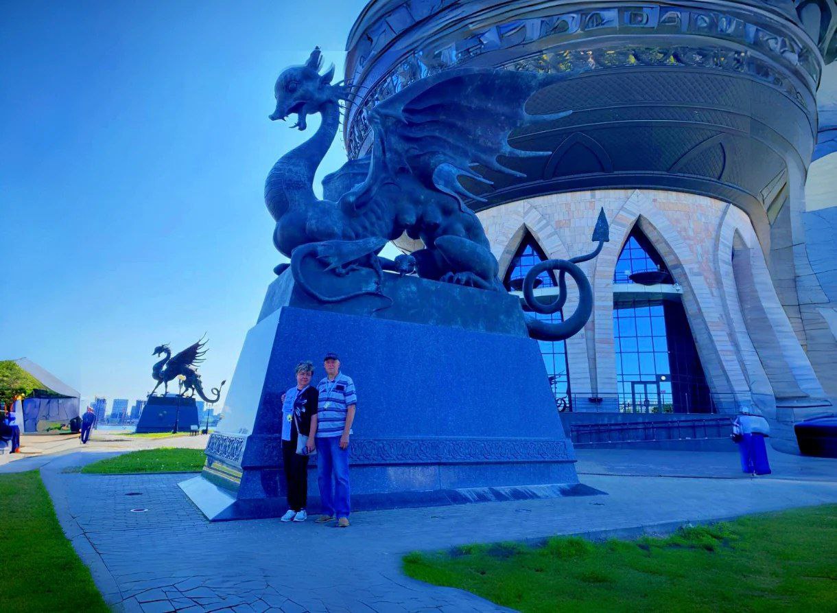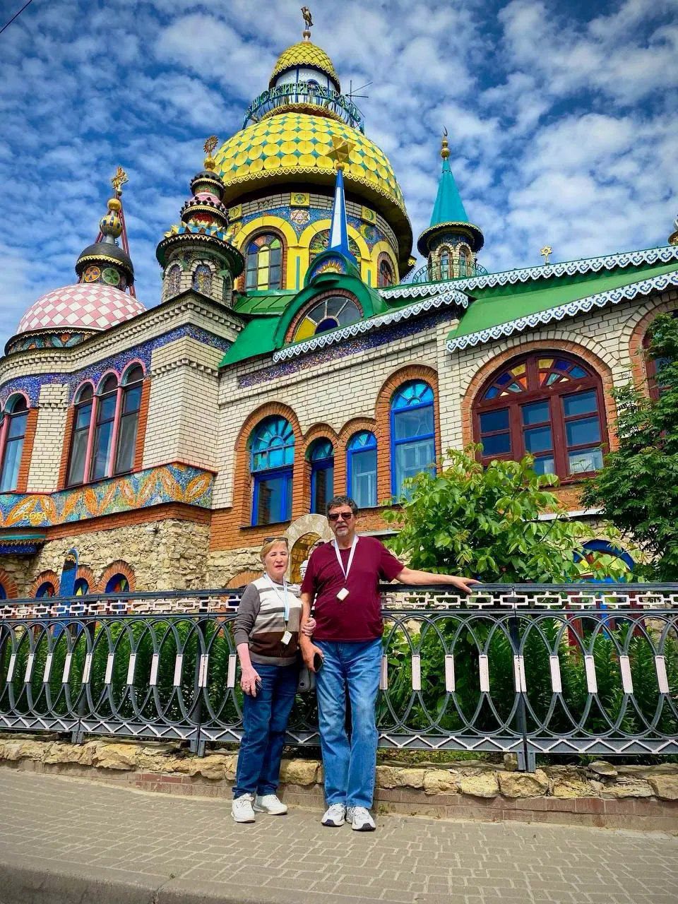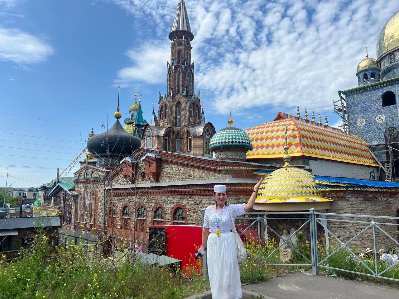 По дороге на остров-град Свияжск, мы остановились у загадочного сооружения - храма всех религий, по замыслу автора, храм должен объединить символы 16 религий, как ныне существующих, так и исчезнувших, таких как ацтеки. Однако, несмотря на его величественный облик, это место не стало храмом в полном смысле: ни одна из религий не освятила его.