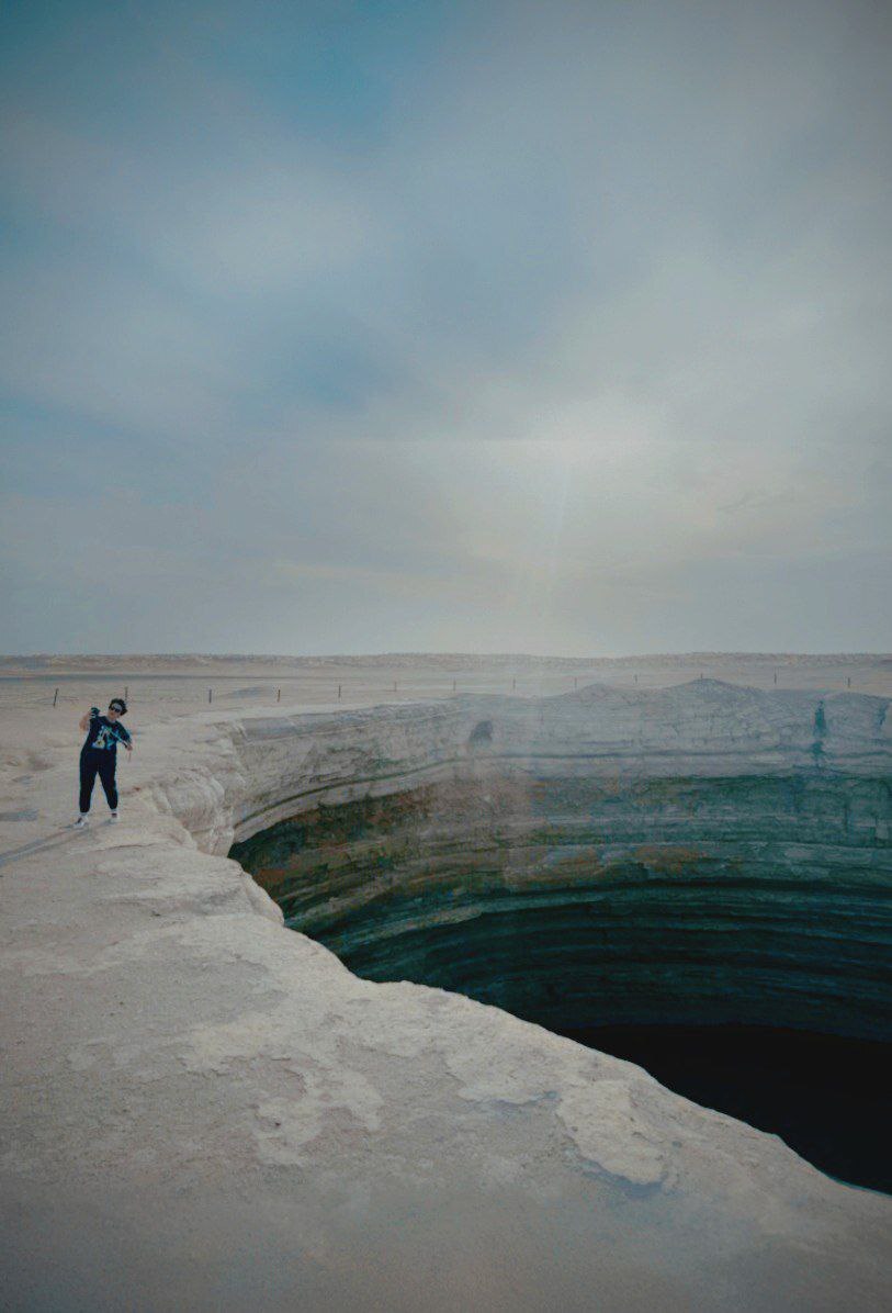 А вот и огненный акцент нашего путешествия - мы своими глазами увидели «Врата в Ад» - горящий газовый кратер Дарваза, где уже более 50 лет горит газ и не тухнет и неизвестно потухнет ли. Сотни больших и малых огненных факелов беспорядочно горят на дне котлована, порой вздымаясь в небо на 15–20 метров. От него идёт беспрерывный гул и нестерпимая жара.