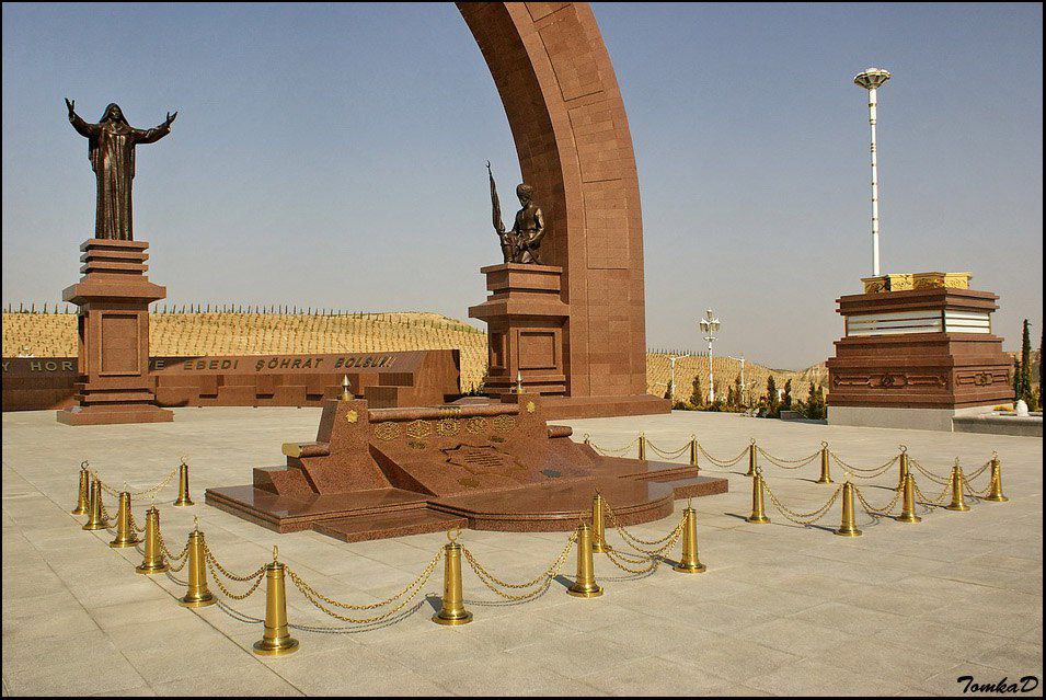 Впечатлил Мемориальный комплекс "Народная память" в честь почитания погибших в Геоктепинской битве, войне 1941-1945 годов, а также поминовения жертв Ашхабадского землетрясения 1948 года. Это очень трогательная картина: Вечный огонь, высокие стелы, скульптуры матери и сыновей, склонившихся перед ней; всё это создаёт обстановку для созерцания и воспоминаний.