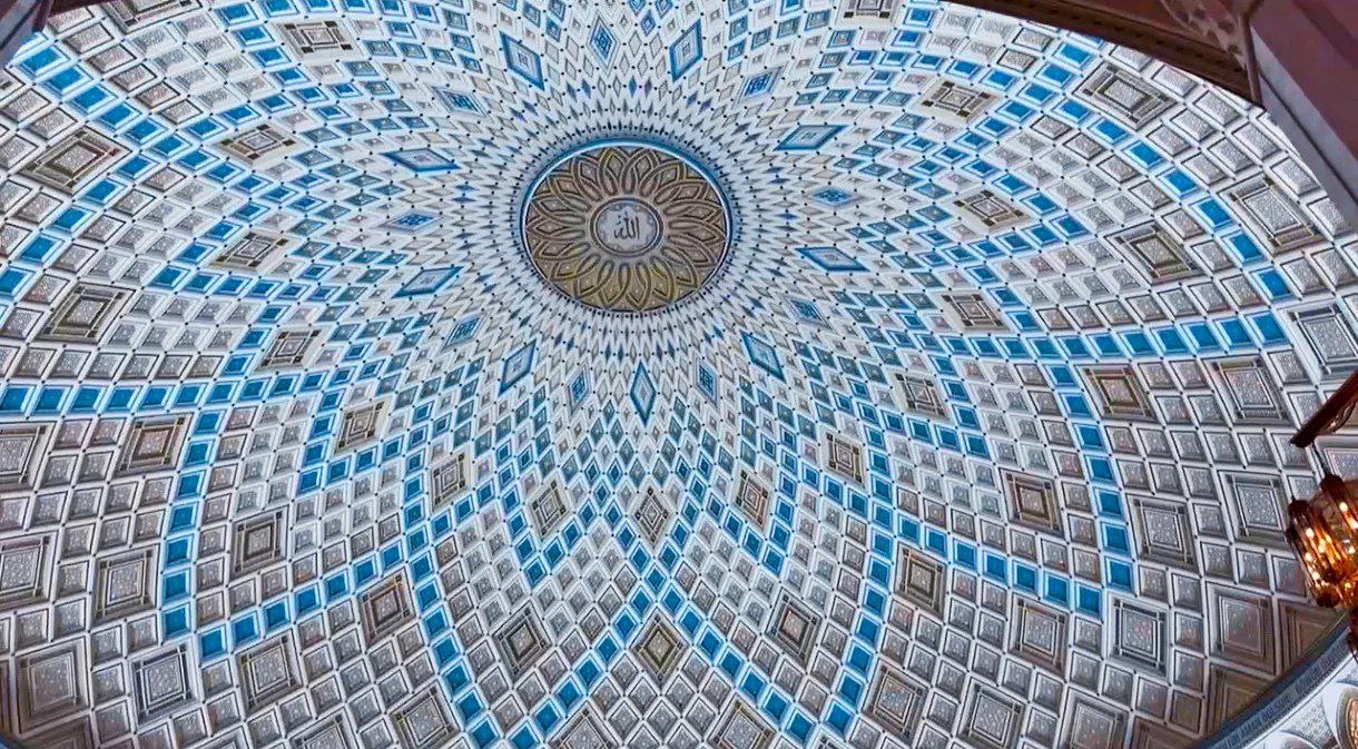 Внутренние залы могут вмещать до 10 тысяч молящихсяОсобого внимания заслуживает огромный расписной куполПол, подогреваемый для комфорта, покрыт огромным туркменским ковром ручной работы
