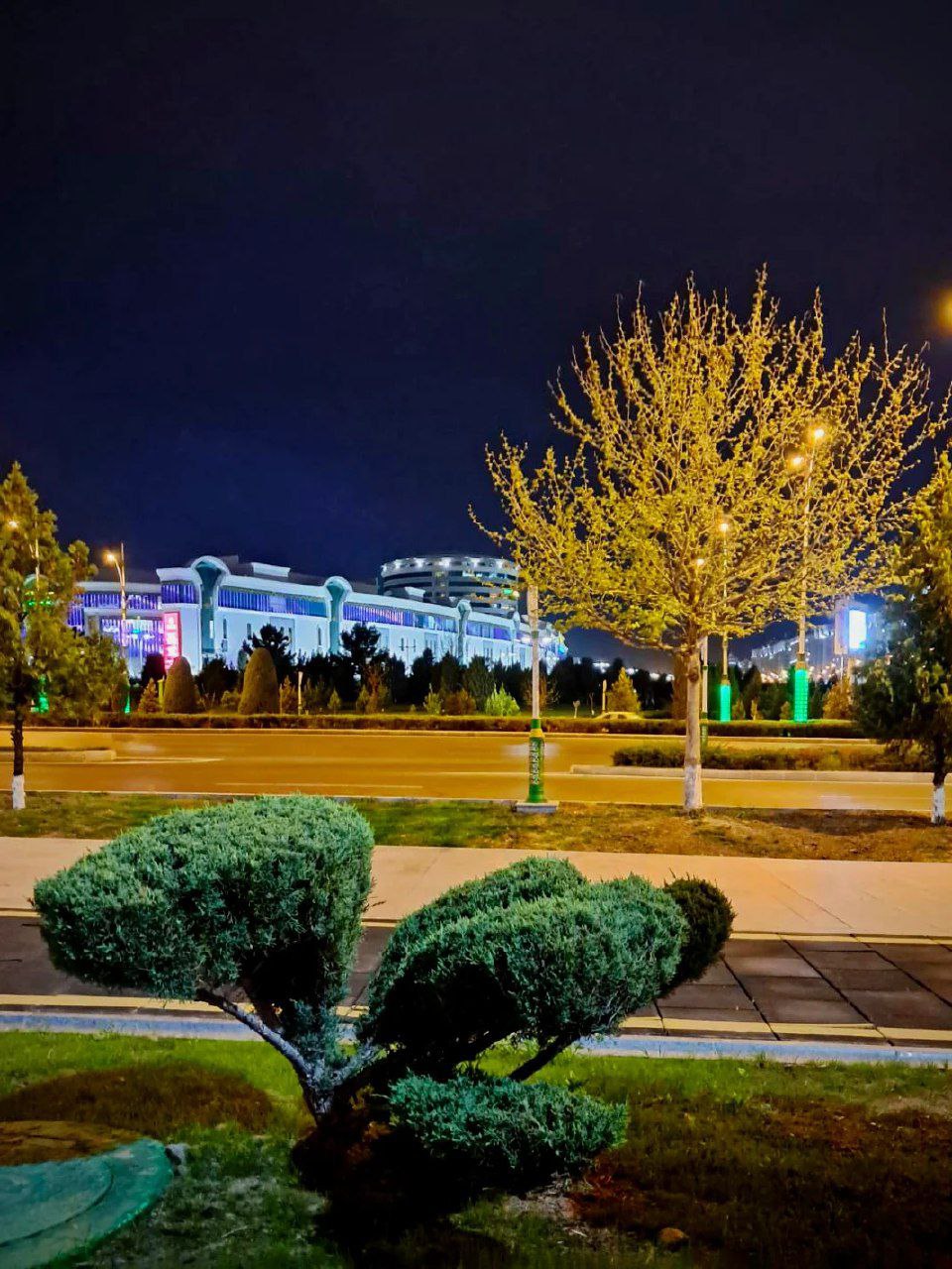 Почти шесть сотен зданий в Ашхабаде покрыты белой мраморной плиткойСегодня это просто архитектурное чудо, утопающее в сочной зелени. Гостиница "Йылдыз" (звездочка)
