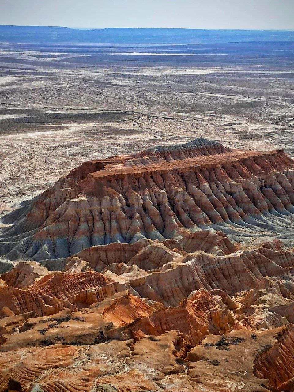А каньон Янги-Кала это и вовсе внеземная территория, и порой казалось, что я покоритель Марса. Отвесные обрывы белого, желтого, охряного, пурпурного и красного цветов, причудливо вырезанные ветрами и дождями похожи на марсианские пейзажи. Когда-то здесь шумели волны древнего моря Тетис.