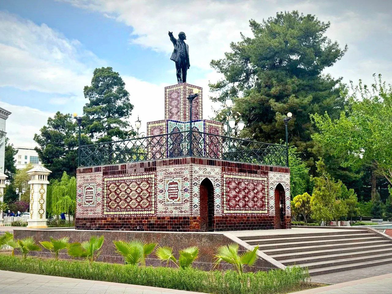 А вот памятник вождю мирового пролетариата В.И. Ленину пережил землетрясение 1948 года. Постамент облицован яркой майоликой.