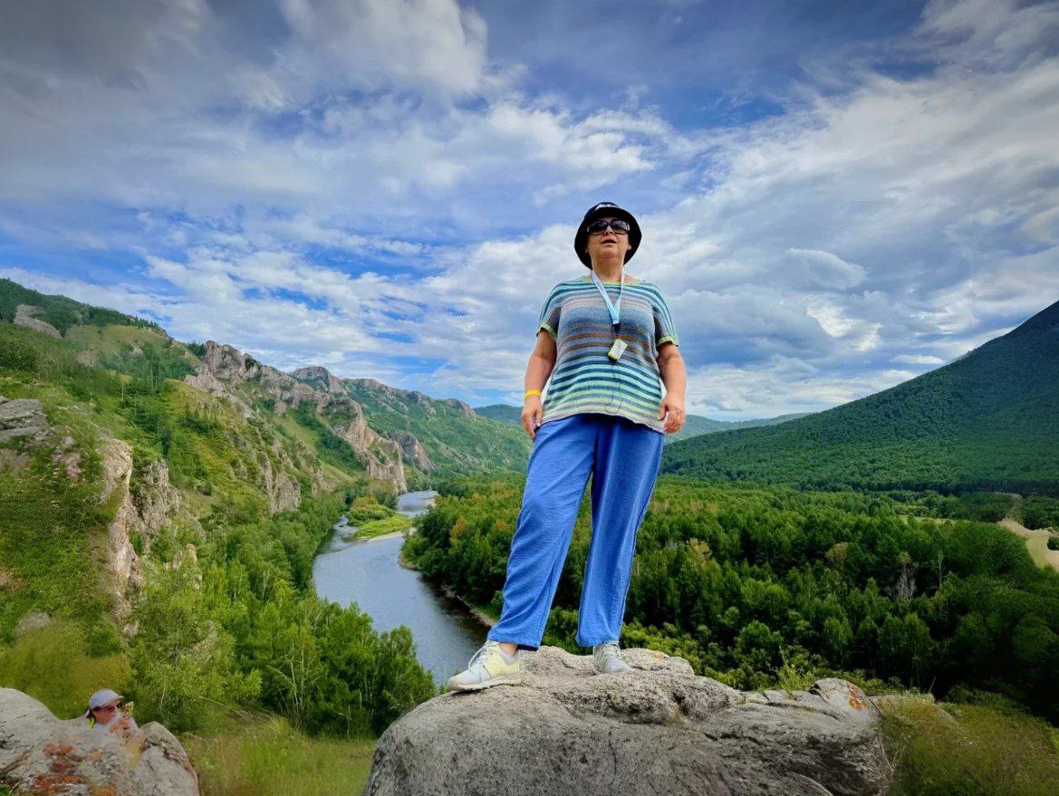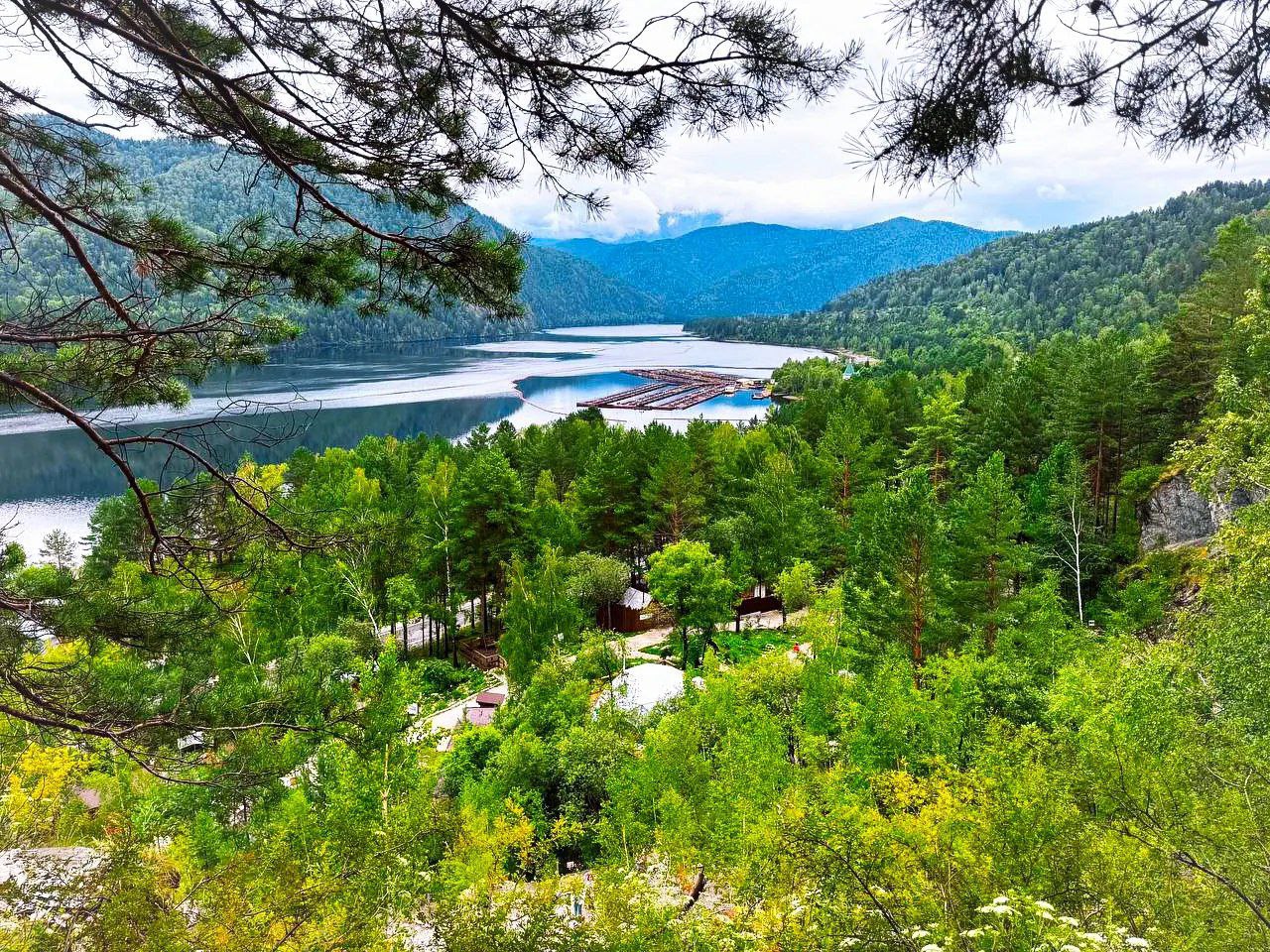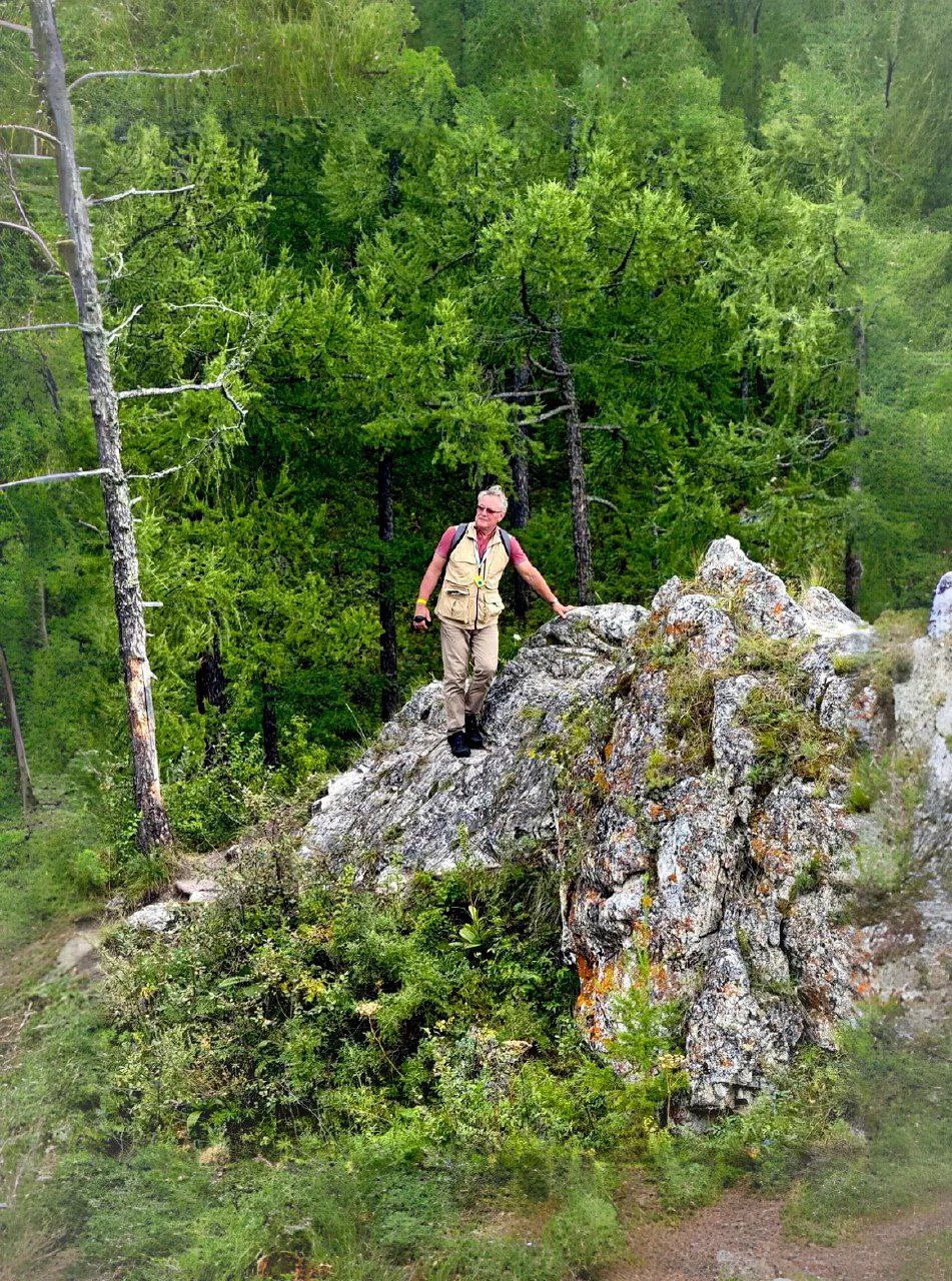 Наверху время растворилось в величественной тишине этих мест. Панорама перед глазами - холст, написанный рукой мастера. Енисей величаво несет свои воды, отражая в своих зеркальных глубинах бесконечное небо. Горы, укутанные в зеленые объятия леса, возвышаются над всем, храня в своих недрах древние тайны. А вдали, словно стражи вечности, гордо стоят пики Боруса, увенчанные снежными шапками.