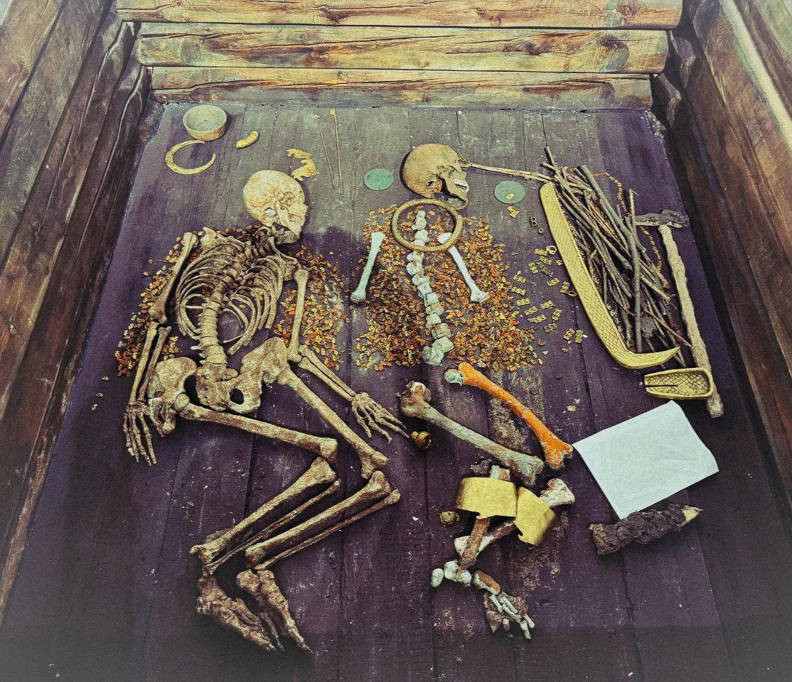 Реконструкция из музея. Неизвестный воин был найден буквально покрытым золотом вместе со своей женщиной