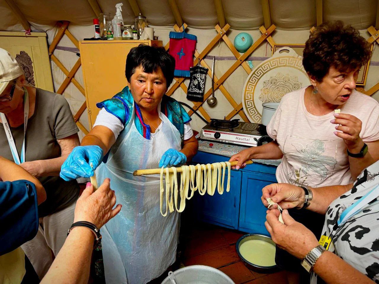 На Чабанской стоянке нас ждал обед и мастер-класс по приготовлению настоящего тувинского сыра-косички.