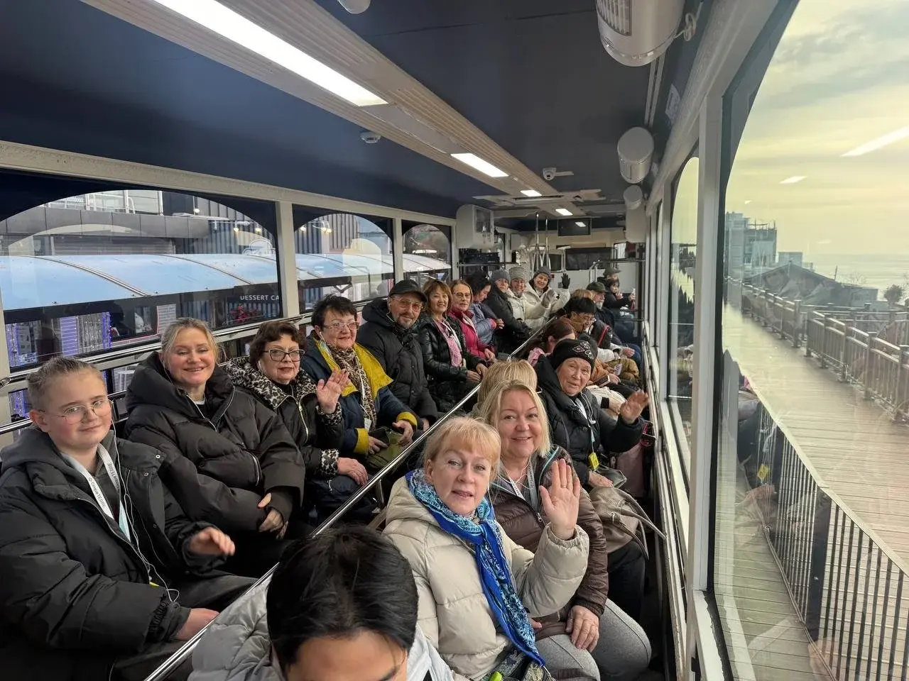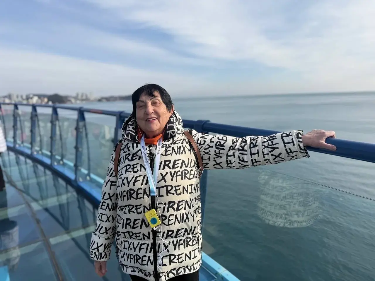 А на смотровой площадке пол стеклянный — я боялась ступить, а сын - нет. Вдали берег Японии разглядели. Или нам показалось? Но красиво!