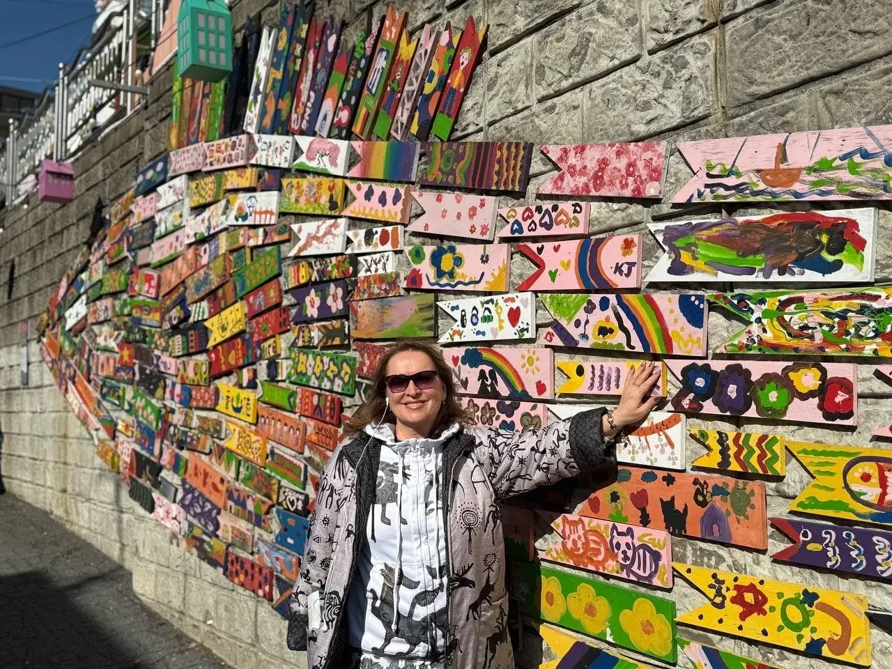 Сын: «Мам, у каждого дома лицо!» И правда: синий с рыбками, жёлтый с цветочками. Плутаем, а на каждом повороте то инсталляция, то море. Муж на карту: «Зачем? Тут главное — надо потеряться».