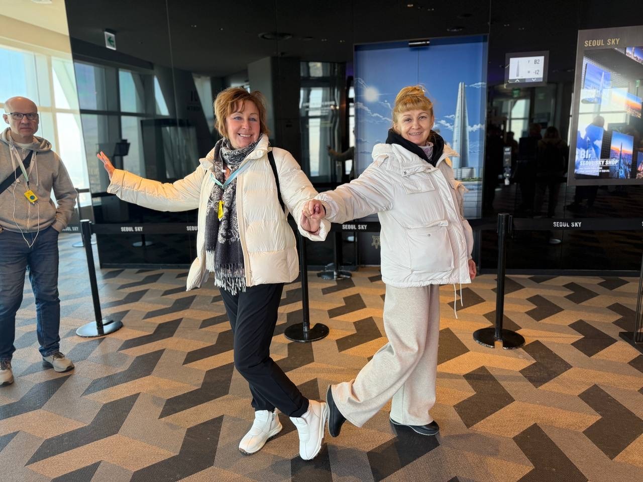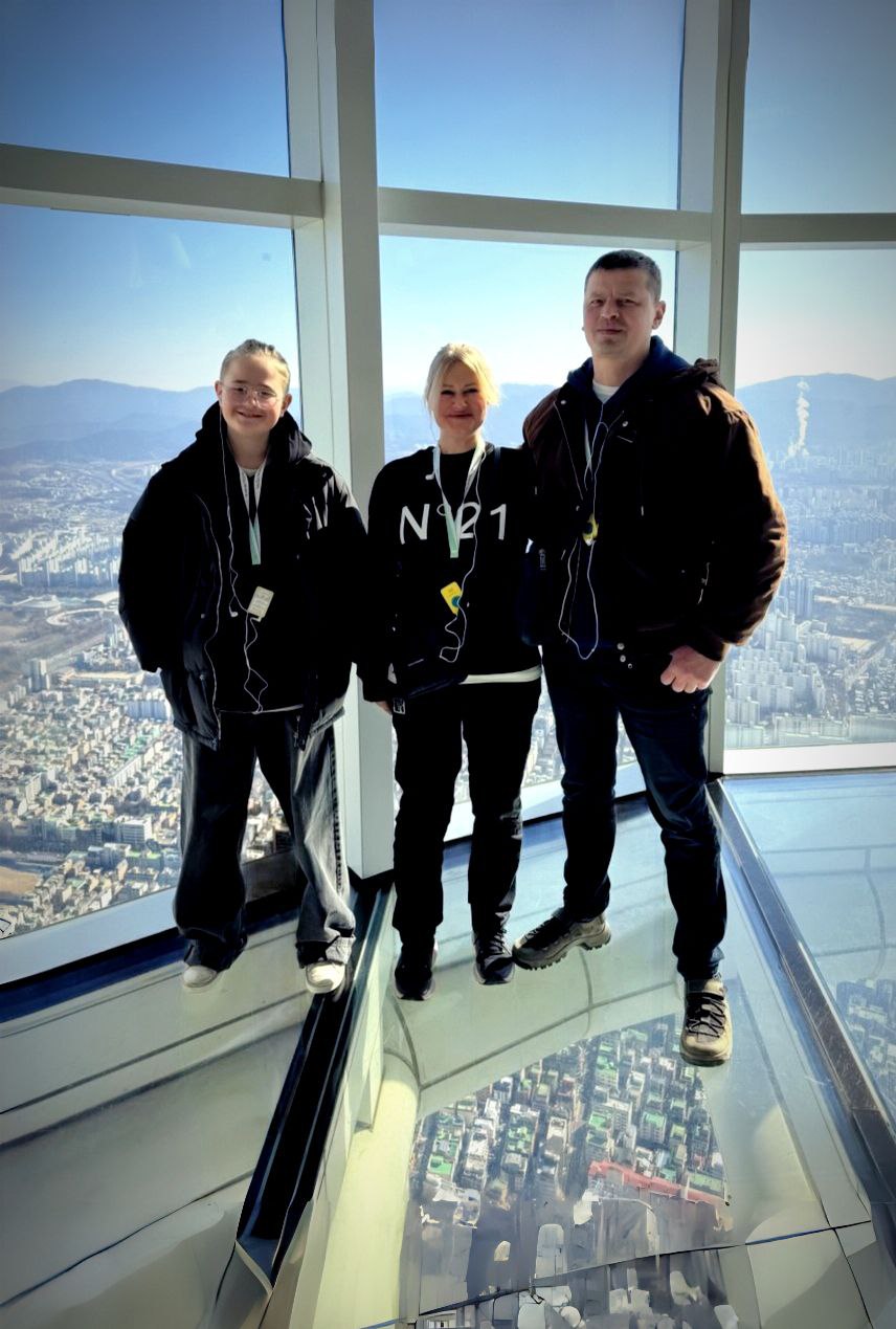 С высоты лучше видно все: и вот мы и отправились в Lotte Tower. В лифте на 120-й этаж, у меня уши заложило, муж храбрился. А сын первым выскочил на прозрачный пол! Пришлось и мне шагнуть. Ощущение полёта безумное. А тут ещё самолёт прямо на уровне глаз взлетел — красота!