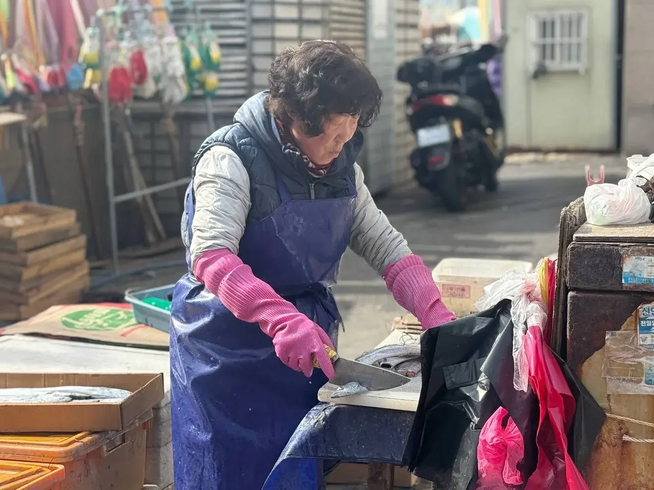 Бабушки в сапогах рыбу разделывают, покрикивают. Мы цену спросить пытались — тыкали пальцем, нам по-корейски ответили, мы кивали как-будто поняли. Так весело было.