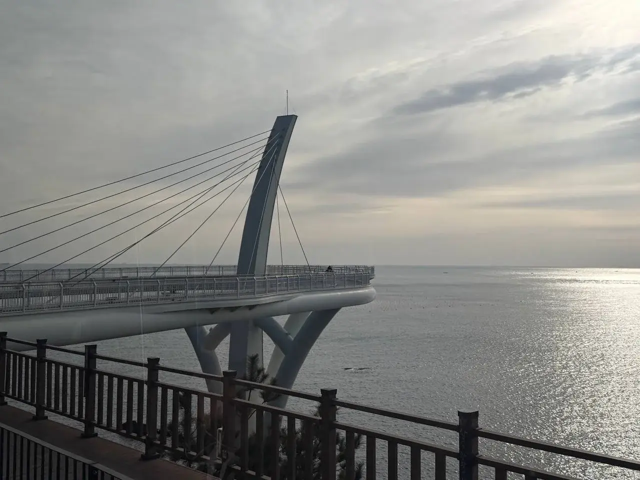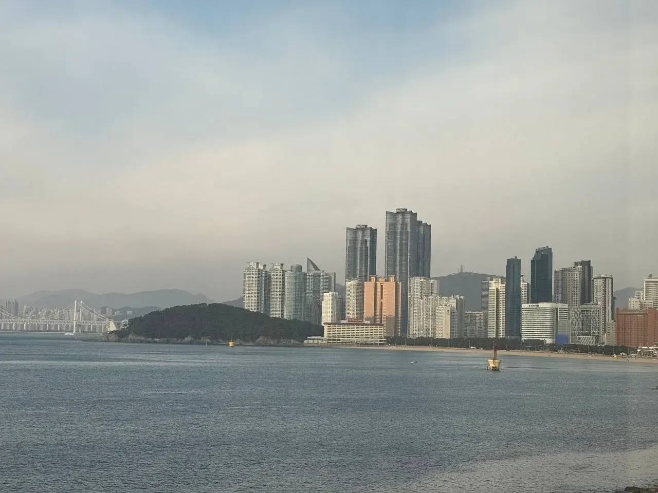 Наш сегодняшний день начался с поездки на вагончиках Вlue Line по канатной дороге Сондо. Кабинки плыли над морем, мы любовались прозрачной водой, видели ферму по выращиванию водорослей, рыбацкие суда, скалы, острова и красивую панораму Пусана. Едем, ветер в лицо, справа волны, слева сосны. Сын фоткает всё подряд.