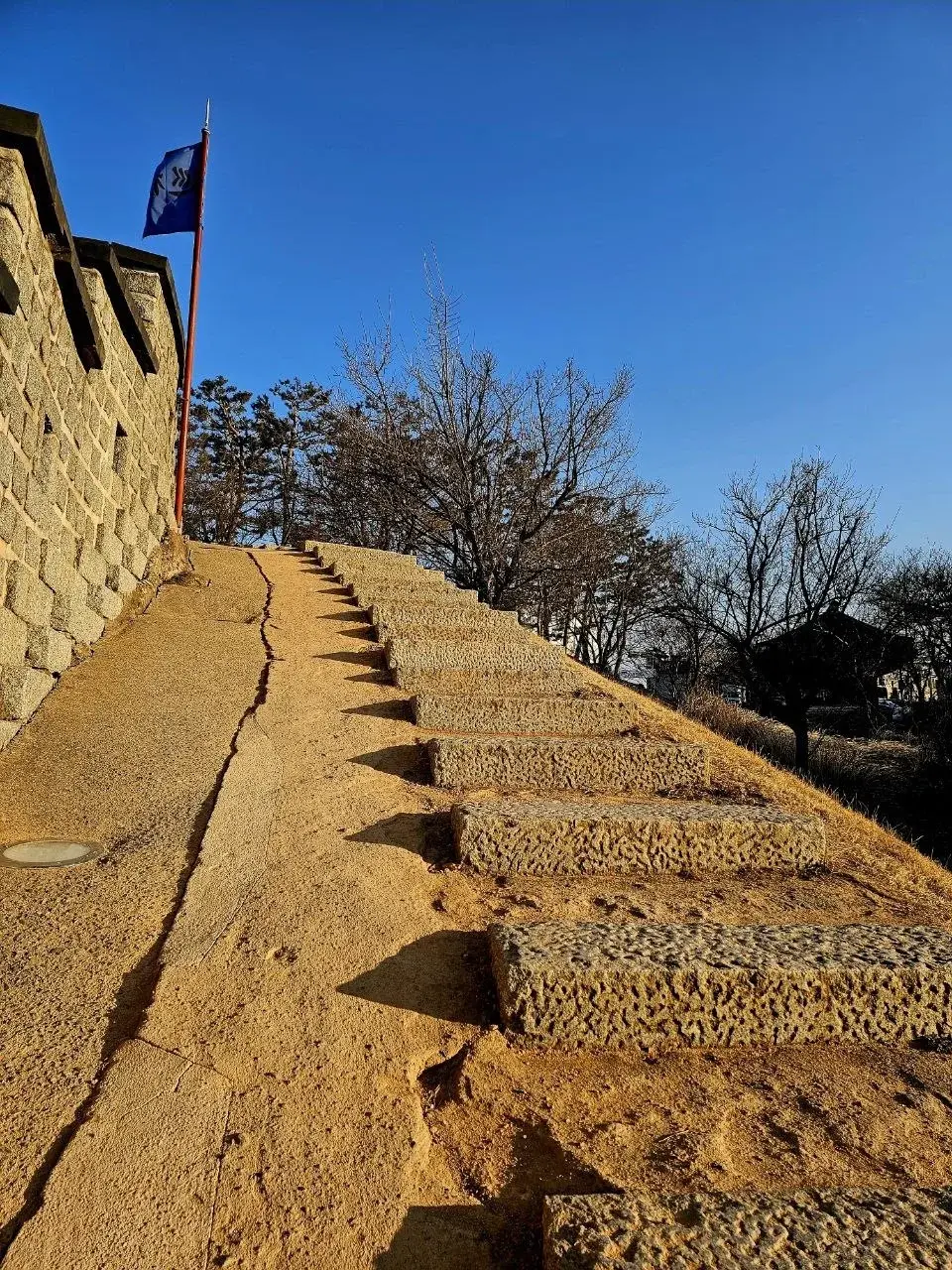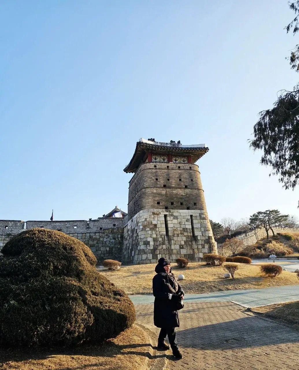 Потом Сувон, крепость Хвасон. Поднимались на холм, ветер сдувает.