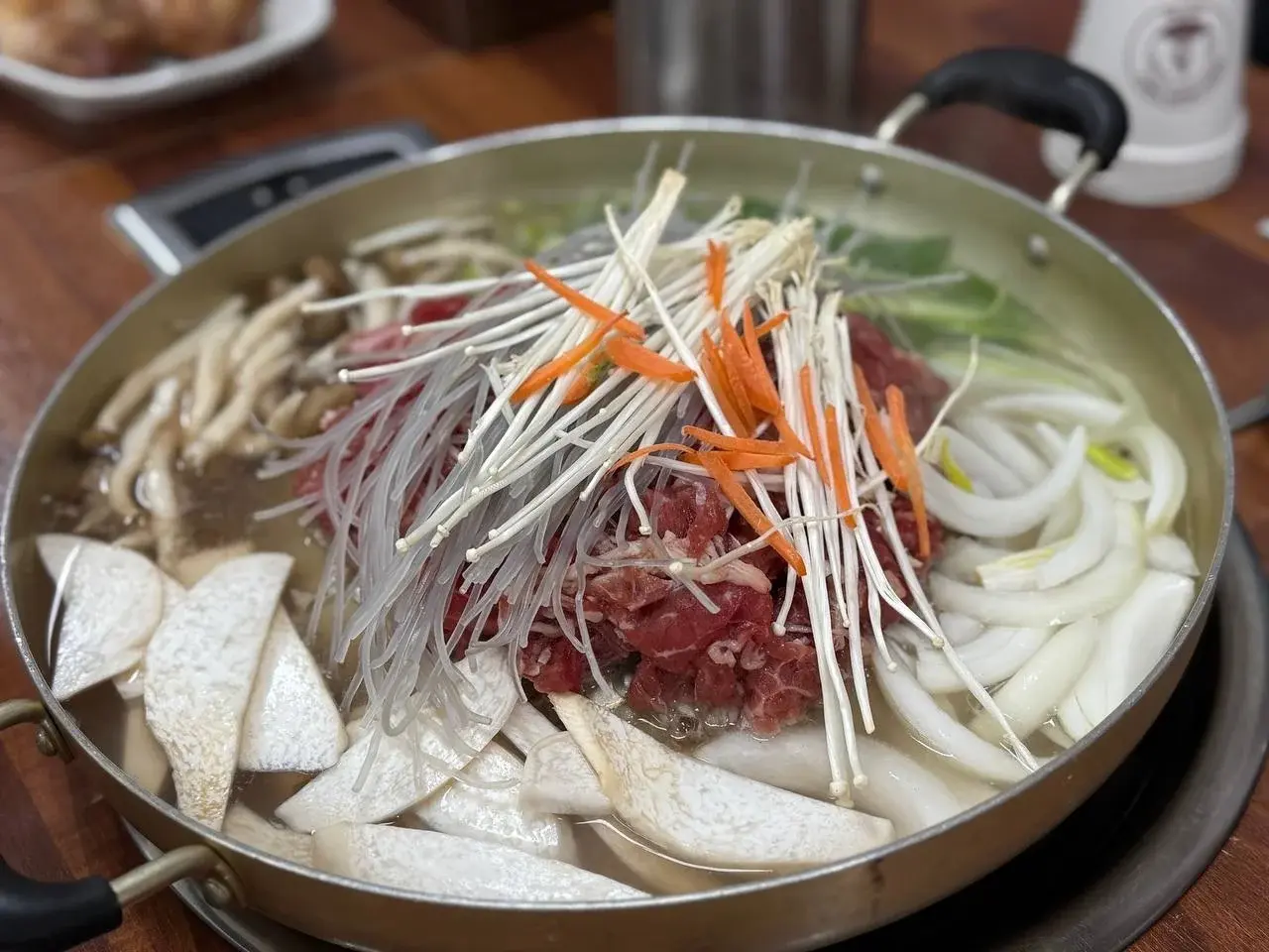Помню наш обед в Кёнджу. Нам принесли сырую говядину, грибы, овощи и поставили жаровню прямо на стол. Мы сами всё это помешивали, лук карамелизовался, мясо шипело, и это было похоже на маленькое священнодействие. Пулькоги таяло во рту.